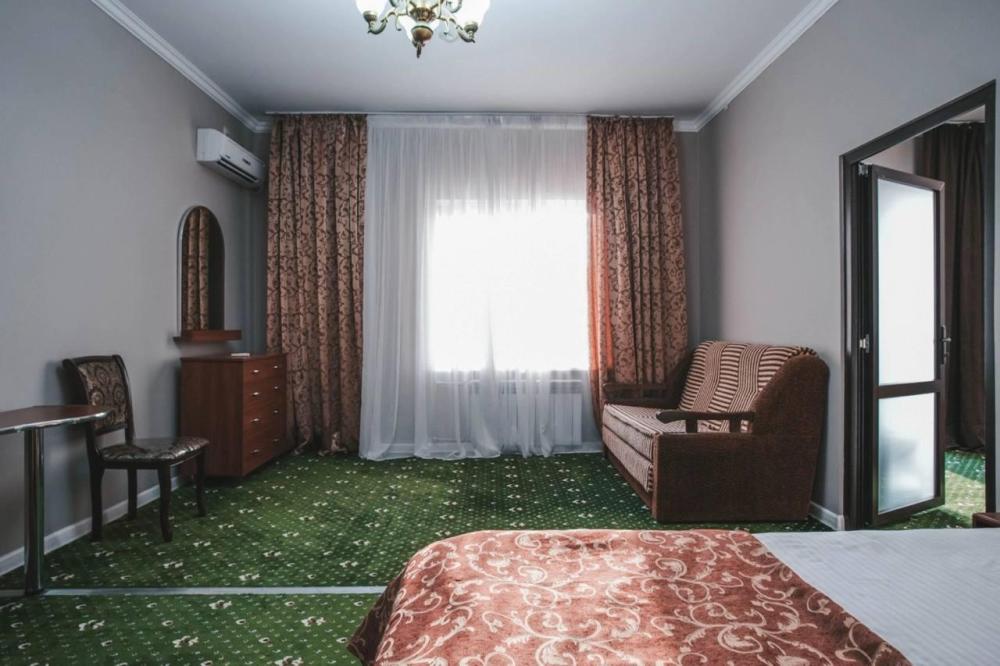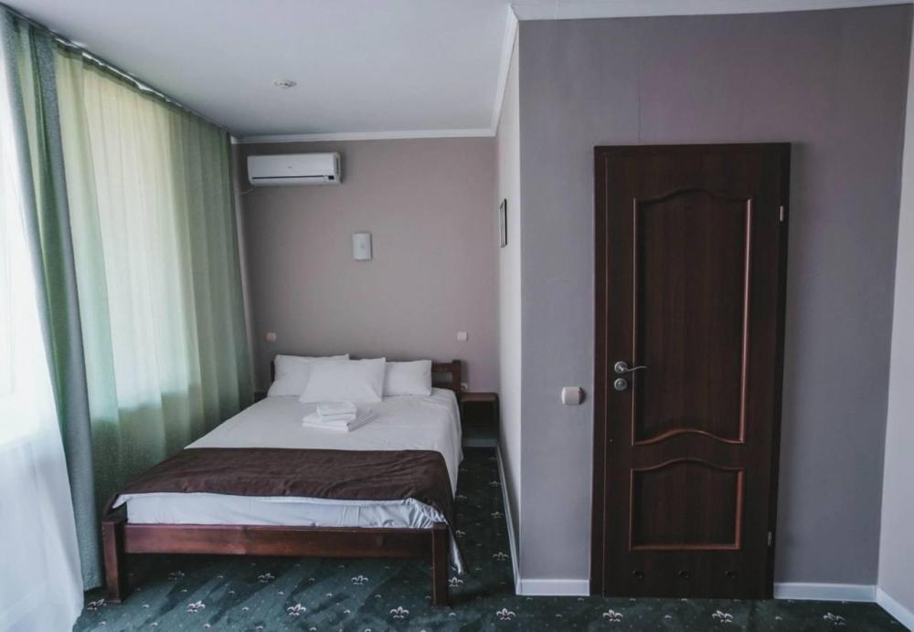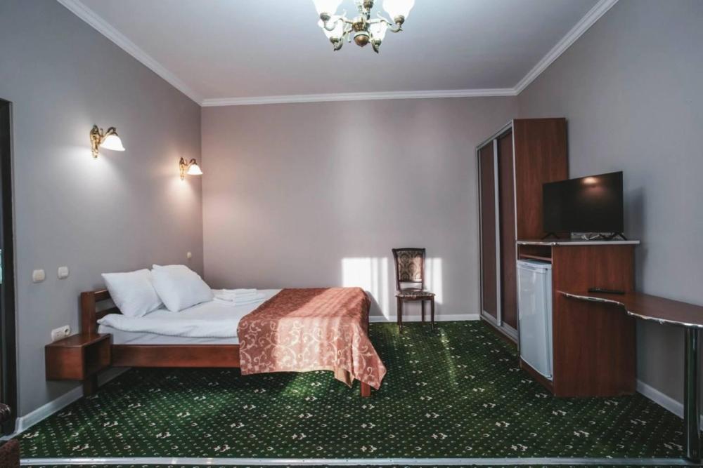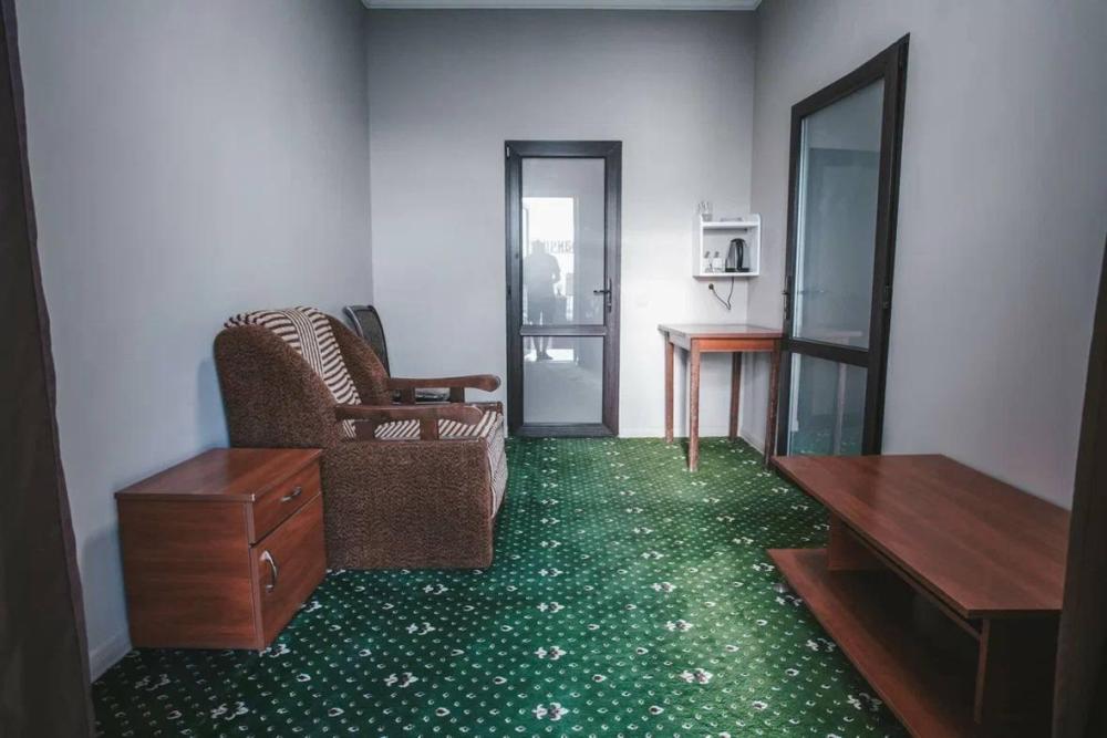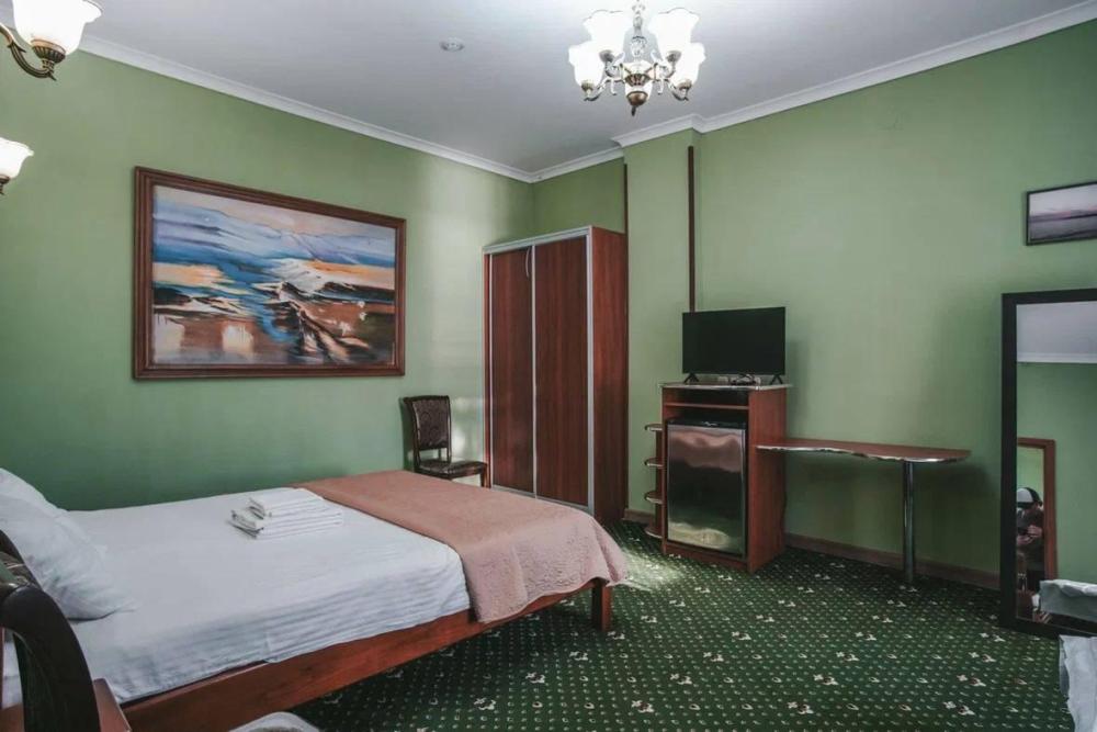 Просторный однокомнатный номер, оформленный в светлых тонах, что создает атмосферу спокойствия и расслабления. В номере есть все необходимое для проживания: удобная кровать с мягкими подушками и теплым одеялом, шкаф для одежды, телевизор с плоским экраном, холодильник, кондиционер и бесплатный Wi-Fi.