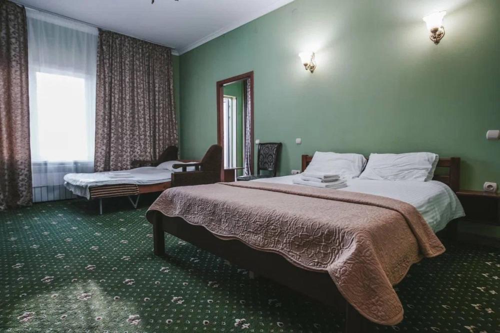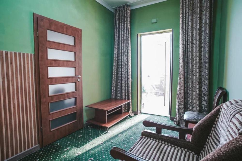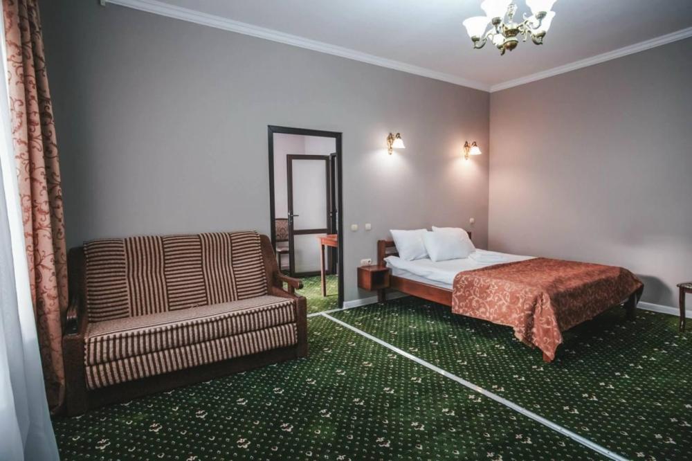 Однокомнатные номера класса «полулюкс» с видом во внутренний двор. Номера расположены на 1-2 этаже, основного двухэтажного здания. В номере 2-х спальная кровать и дополнительное место - раскладное кресло. Удобства: плазменный телевизор, холодильник, утюг, шкаф, кондиционер, ванная.
