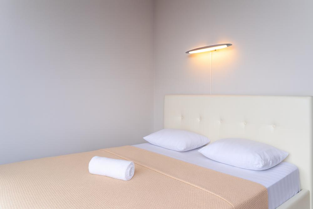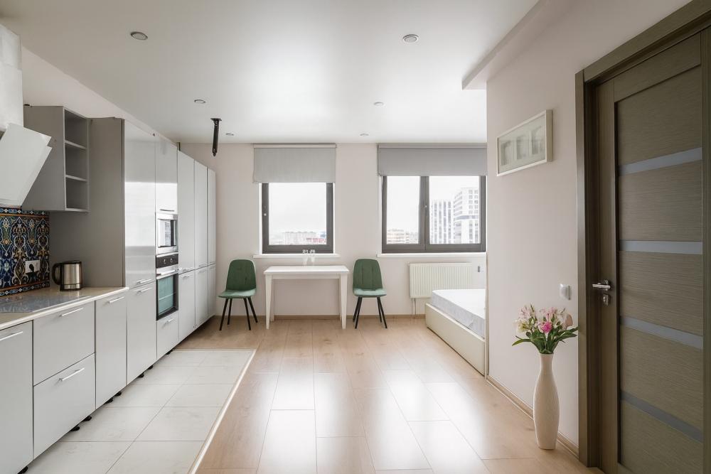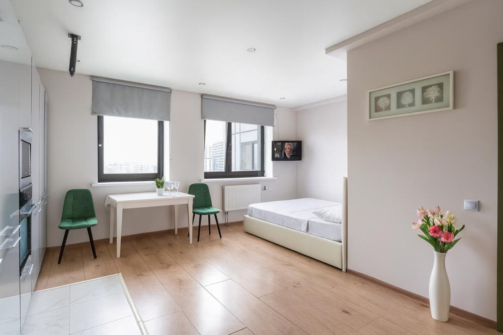 Уютная светлая студия с шикарным евроремонтом в Башне Красный Кит. Есть своя подземная парковка и круглосуточная охрана. В квартире есть все необходимое для комфортного проживания, включая постельное белье и полотенца со ср-ми гигиены, ТВ-плазма, wi-fi, фен, утюг, гладильная доска, сушилка.