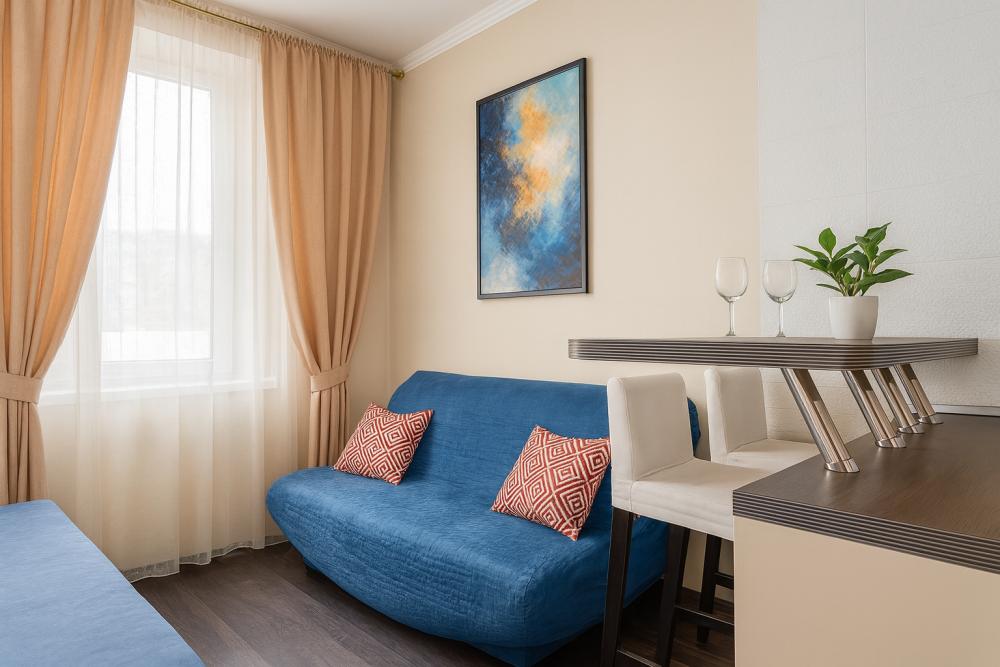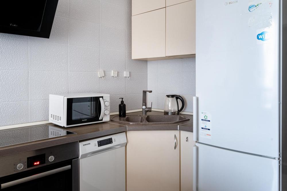 Студия в ЖК Квартал 9-18. Новый элитный дом возле Ледовой Арены. Для удобства гостей: - Огороженная территория, парковочное место для авто - Чистые полотенца,чистое белье,средства для гигиены - Все бытовые приборы необходимые для проживания: электроплита, чайник, холодильник, духовка, стиральная машина, микроволновка, ТВ-плазма, утюг, пылесос, Wi-Fi.