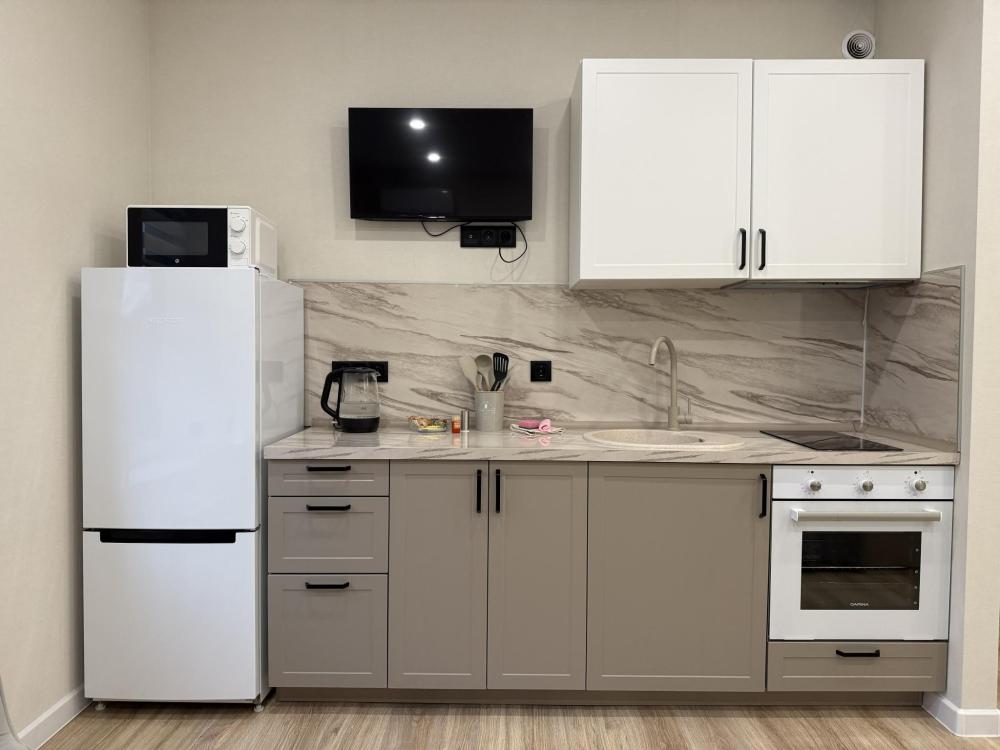 В квартире имеется всё необходимое для приятного пребывания: чай и кофе, белоснежную постель, мягкие подушки, пушистые полотенца и одноразовые принадлежности, удобная двуспальная кровать с комфортным матрасом, двуспальный диван, SMART TV с набором каналов.