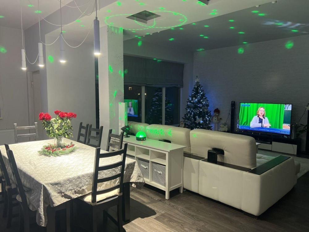 Цокольный этаж — ваш SРА-комплекс: хамам, сауна, солярий, профессиональный тренажерный зал и комната отдыха. Крыша — место силы: Уникальный мезонин с панорамным остеклением, мангалом-жаровней и зоной для отдыха. Идеально в любое время года. Простор и уют: На первом этаже — гостиная-трансформер 60 м² с камином, панорамными окнами и домашним кинотеатром. Современная кухня-остров, оснащённая всей техникой. Комфорт для всей семьи: Второй этаж: 5 просторных комнат (2 смарт-спальни), 3 санузла и 3 гардеробные. Для продуктивной работы: 2 оборудованных кабинета с высокоскоростным оптоволоконным интернетом. Техническое оснащение: Центральное кондиционирование, встроенный пылесос, собственная прачечная.
