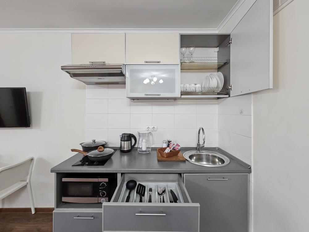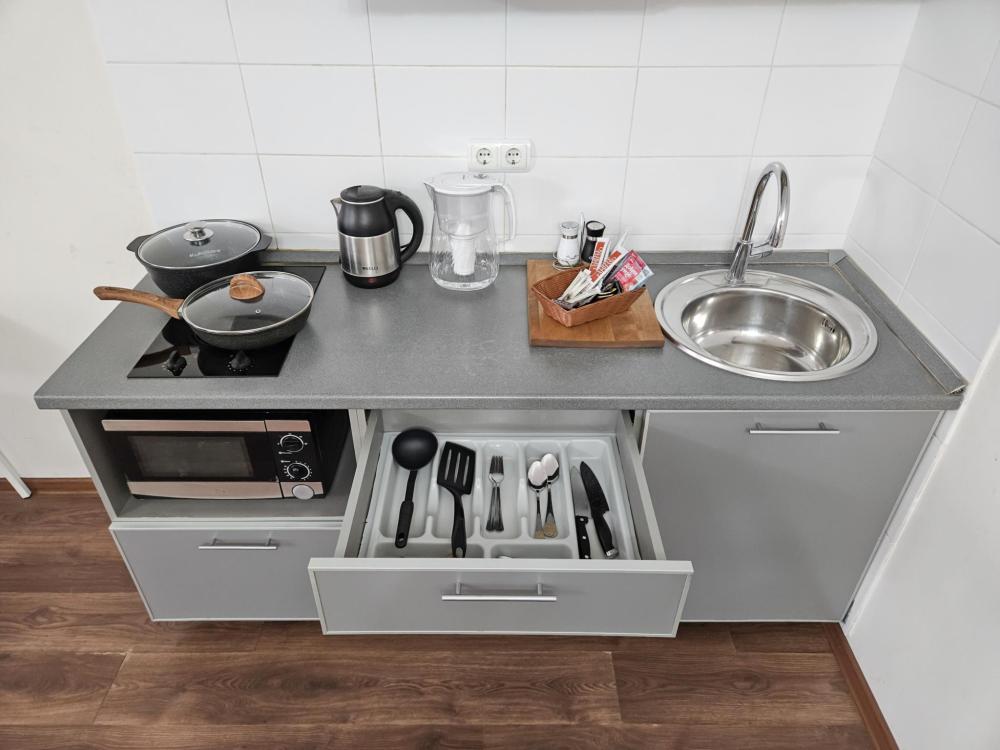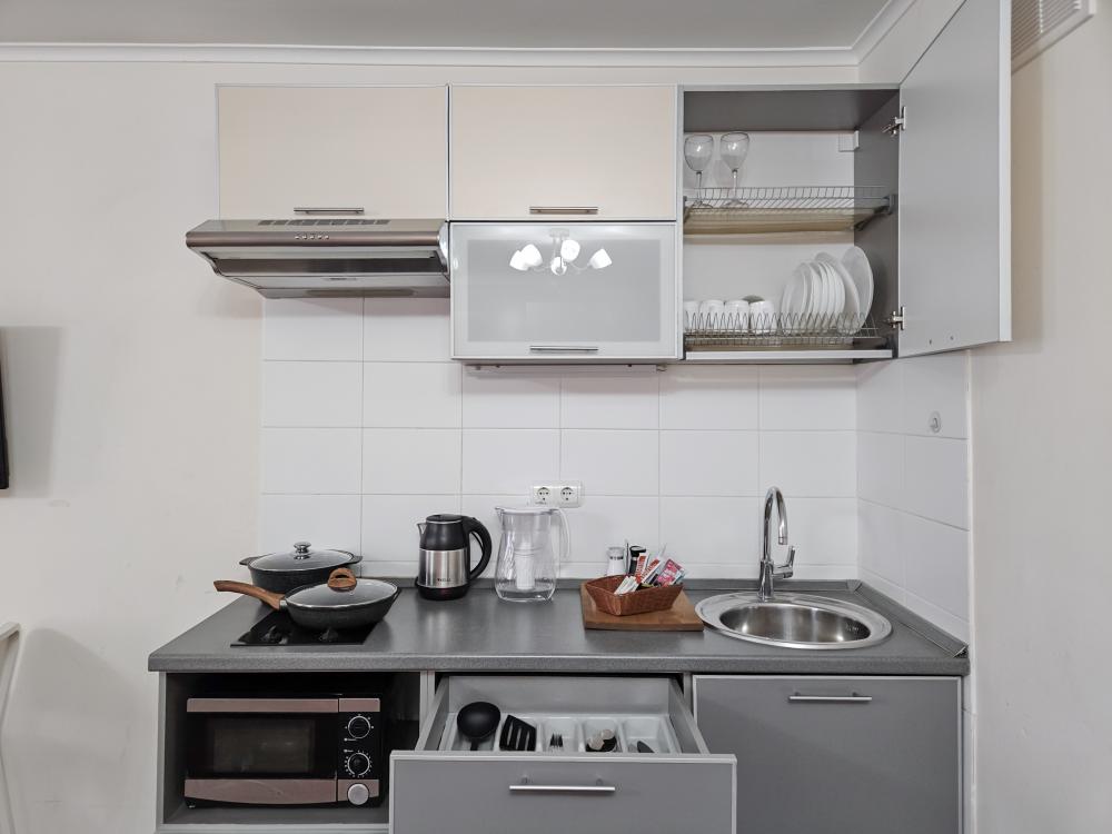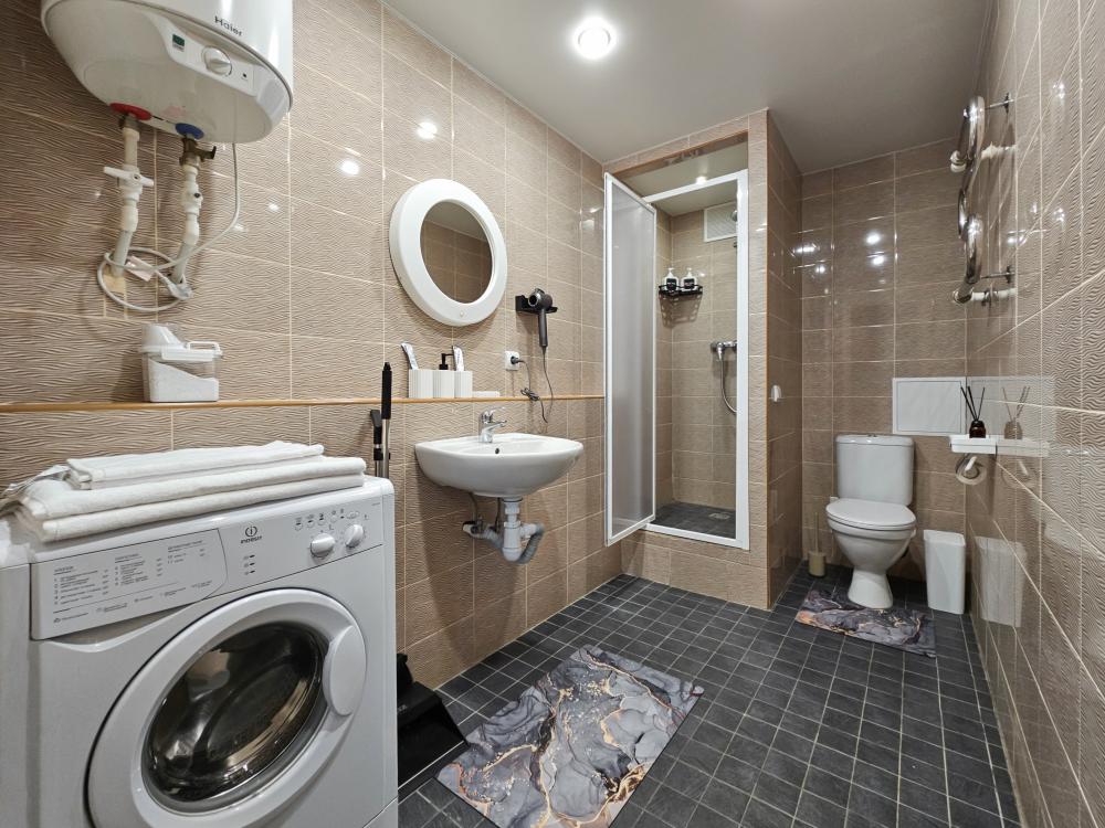 Техника: ТВ с кабельными каналами, быстрый Wi-Fi, стиральная машина, утюг, фен.