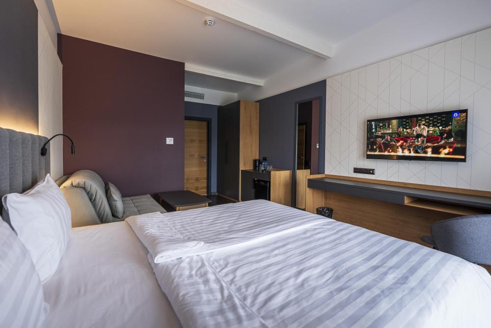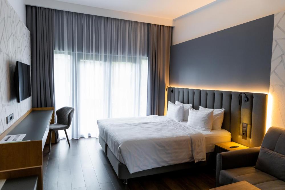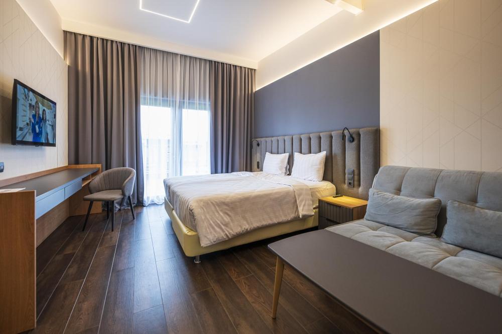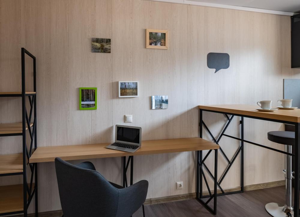 Однокомнатный номер площадью 24-27 кв.м. отличается функциональной рабочей зоной в спальне и имеет выход на индивидуальную террасу с зоной барбекю. Максимальная вместимость номера 4 гостя, что станет отличным решением для семей (двуспальная кровать и диван-кровать). Мы заботимся о вашем комфорте, поэтому двуспальная кровать оснащена удобным ортопедическим матрацем, во всех номерах есть кондиционеры и теплый пол в ванной комнате. В номере есть телевизор, чайник, в ванной комнате - полный набор средств гигиены, фен, полотенца. Зона BBQ перед каждым домиком позволит приготовить блюда с дымком и подарить себе гастрономическое наслаждение на террасе в любое время.