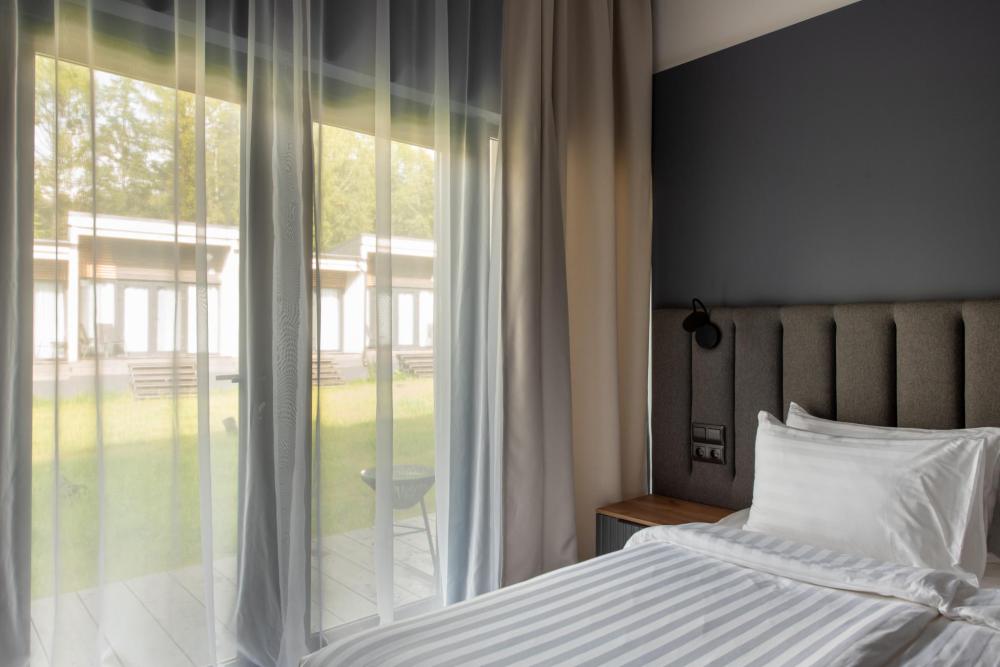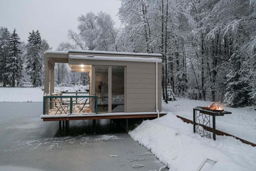 Семейный таунхаус с кухней-гостиной, спальней и террасой в уникальном месте на Новой Риге. Панорамные окна "в пол". Дизайнерская архитектура и интерьеры. Таунхаус оснащен большой двуспальной кроватью, и диваном, укомплектованной кухней-гостиной с обеденным столом, террасой с мангальной площадкой. В домике есть wi-fi, мини-бар, индукционная плита, микроволновая печь, набор необходимой посуды, ТВ, большая душевая кабина. На территории отеля есть баня, пруд для рыбной ловли и пляжного отдыха, тропинки и дорожки для прогулок, частная охраняемая парковка, мангальные площадки и дом для BBQ, выход в живописный лес с лесной речкой.