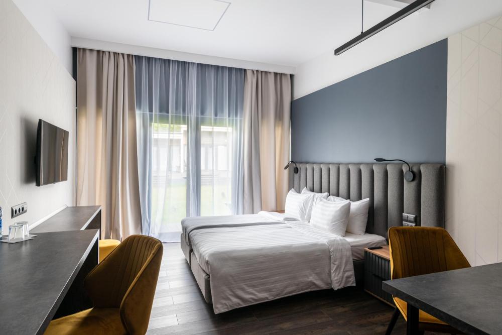 Однокомнатный номер площадью 24-27 кв.м. отличается функциональной рабочей зоной в спальне и имеет выход на индивидуальную террасу с зоной барбекю. Максимальная вместимость номера 3 гостя, что станет отличным решением для семей (для третьего гостя предоставляется дополнительное спальное место). Мы заботимся о вашем комфорте, поэтому двуспальная кровать оснащена удобным ортопедическим матрацем, во всех номерах есть кондиционеры и теплый пол в ванной комнате. В номере есть телевизор, чайник, в ванной комнате - полный набор средств гигиены, фен, полотенца. Зона BBQ перед каждым домиком позволит приготовить блюда с дымком и подарить себе гастрономическое наслаждение на террасе в любое время.