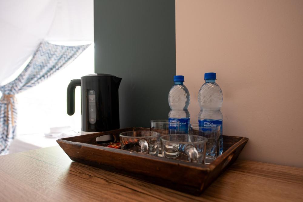 Двухкомнатный номер площадью 25 кв.м. состоит из спальни и гостиной с кухонной зоной, имеет выход на индивидуальную террасу с зоной барбекю. Мы заботимся о вашем комфорте, поэтому двуспальная кровать оснащена удобным ортопедическим матрацем, во всех номерах есть кондиционеры и теплый пол в ванной комнате. Гостиная оборудована телевизором, рабочей зоной и кухонным уголком с индукционной варочной панелью, набором посуды, холодильником, чайником и микроволновой печью. В ванной комнате есть полный набор средств гигиены, фен, полотенца. Зона BBQ перед каждым домиком позволит приготовить блюда с дымком и подарить себе гастрономическое наслаждение на террасе в любое время.
