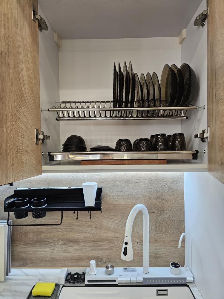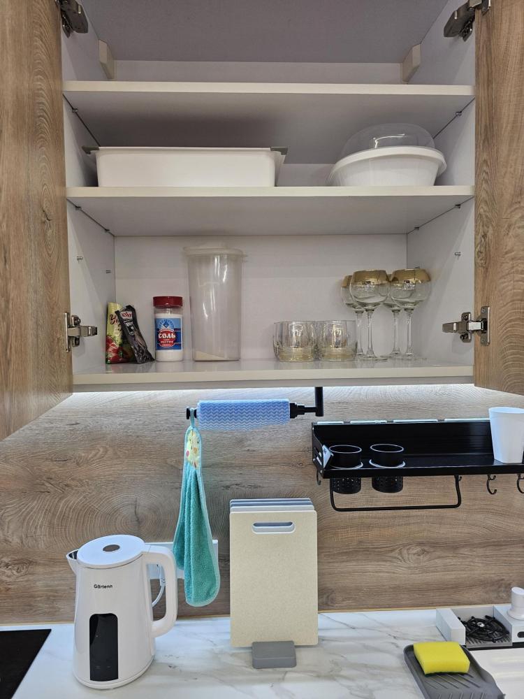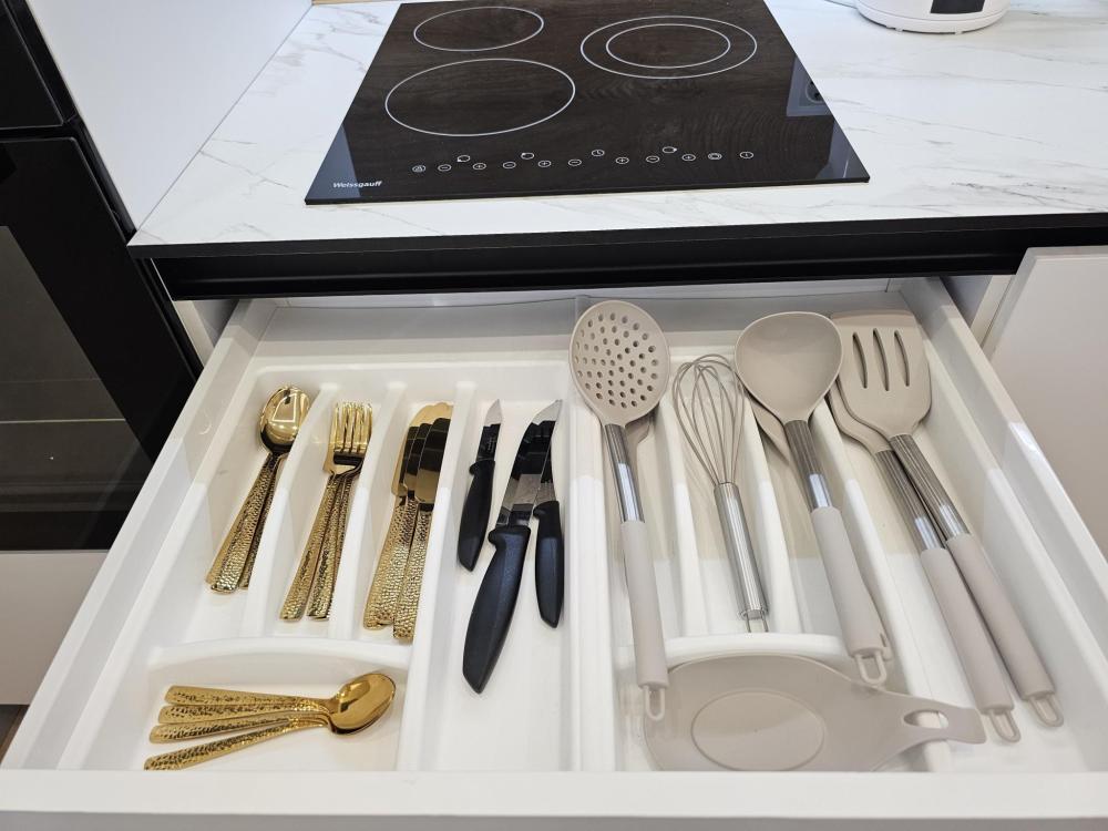 •Всё необходимое для готовки - полный комплект посуды, бокалы, столовые приборы, разделочные доски, набор кастрюль, включая мультиварку.