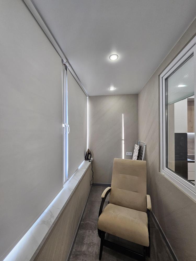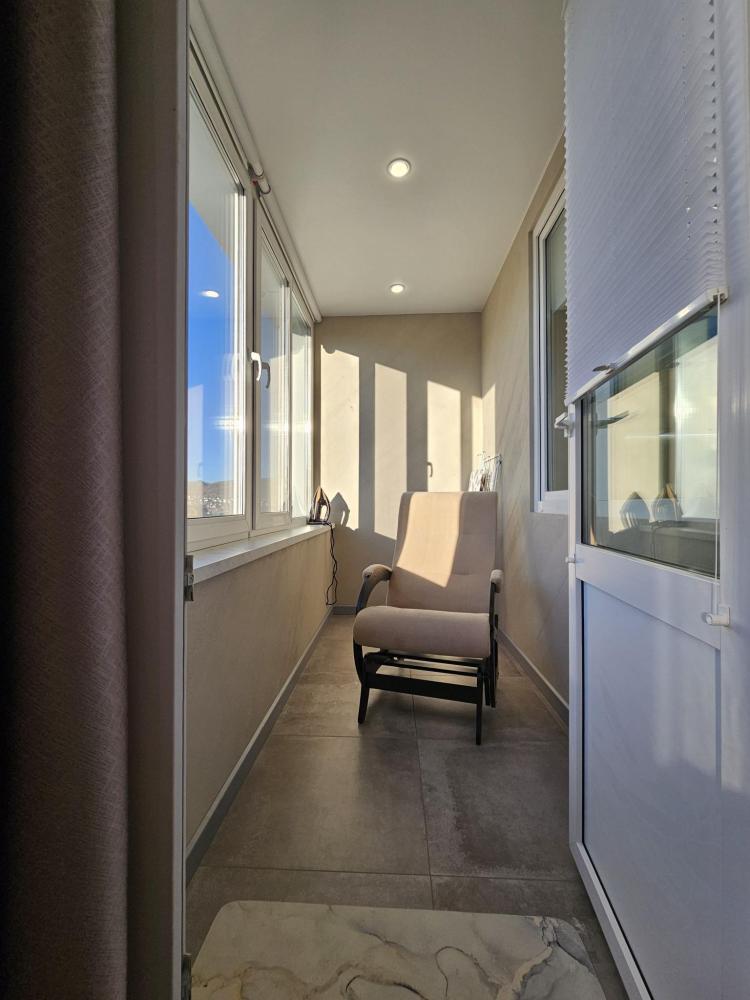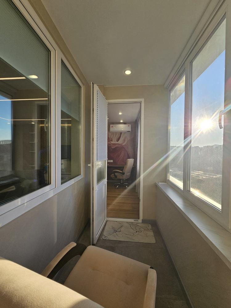 •Лоджия с панорамными окнами, тёплым полом и креслом-качалкой — идеальное место, где можно встретить рассвет, провести рабочий час за ноутбуком или просто расслабиться с чашкой кофе.