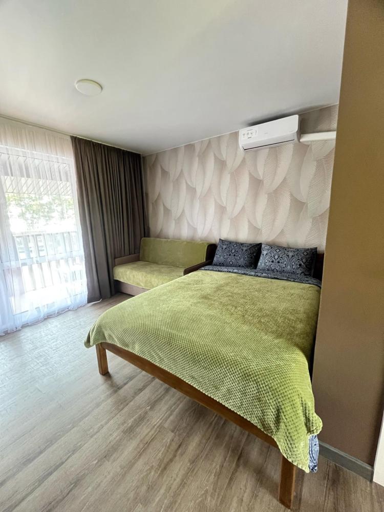 4-ех местная комната для семьи из 2-ух взрослых и 2-ух детей, со всеми удобствами. Комнаты находятся на 1 этаже, где есть терраса, для вашего удобства там есть лавочка, стол и 2 стула. В комнате находится: двуспальная кровать, двуспальный диван, стол и стулья 3 шт, холодильник, чайник, кондиционер, теплый пол, телевизор, микроволновая печь, сейф, фен, сушка для белья, шкаф для хранения личных вещей. Мини-кухня с раковиной, посудой и кухонными принадлежности. Сан узел ( раковина, туалет, душ), полотенца, постельное бельё.