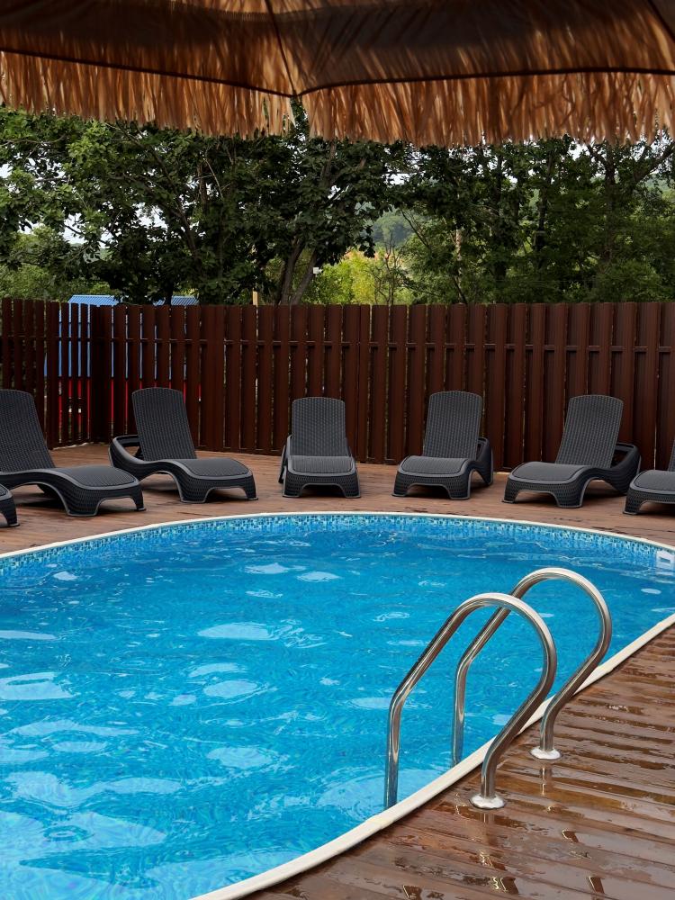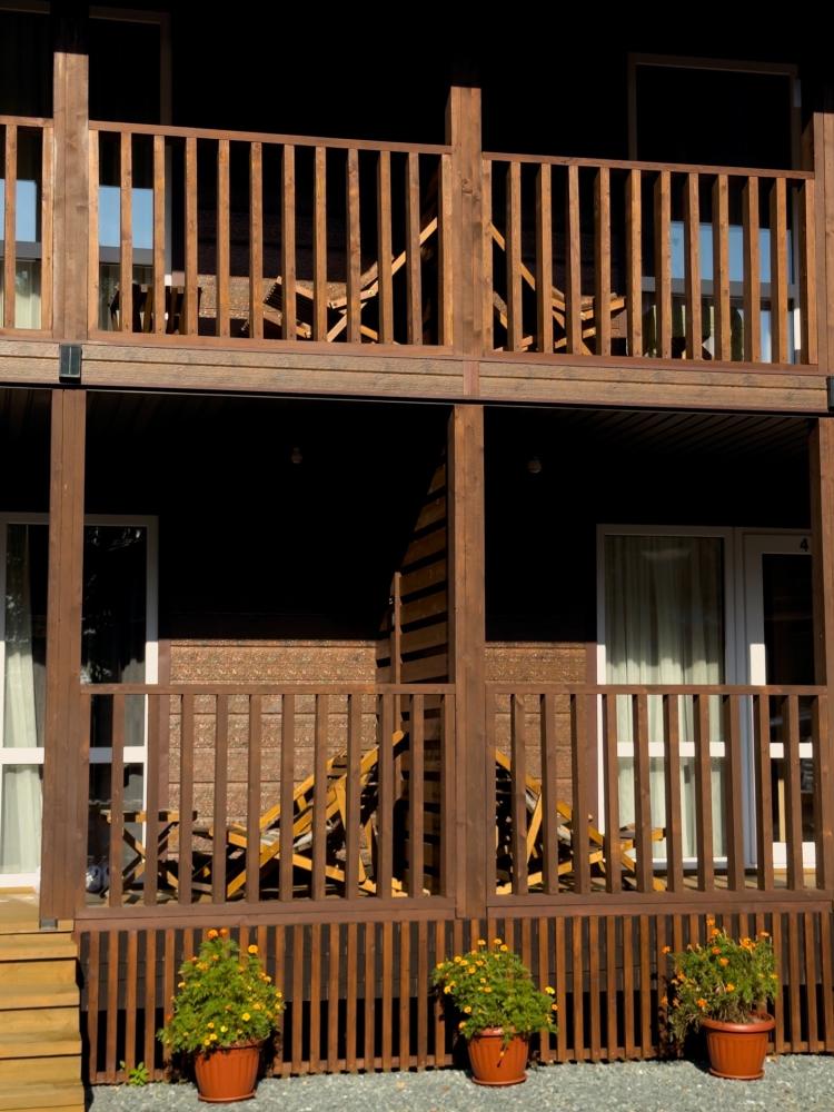 Комнаты рассчитаны на 4 человека (2 взрослых и 2 детей). 1 этаж - Вход в номер с веранды. На веранде - стол и 2-3 стула и лавочка. Двуспальная кровать, Двуспальный диван, Сейф, Стол и Стулья 3 шт, Холодильник, Кондиционер, Фен, Телевизор, Микроволновая печь, сушка для белья. Мини-Кухня с раковиной, Посуда и Кухонные принадлежности. Сан узел ( Раковина, Туалет, Душ), Полотенца - 4 больших, 2 маленьких, 1 кухонное. Постельное белье - 2 комплекта.