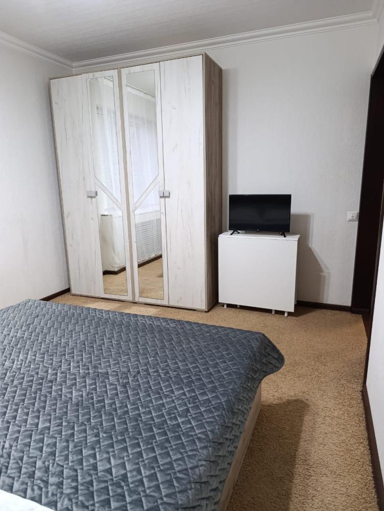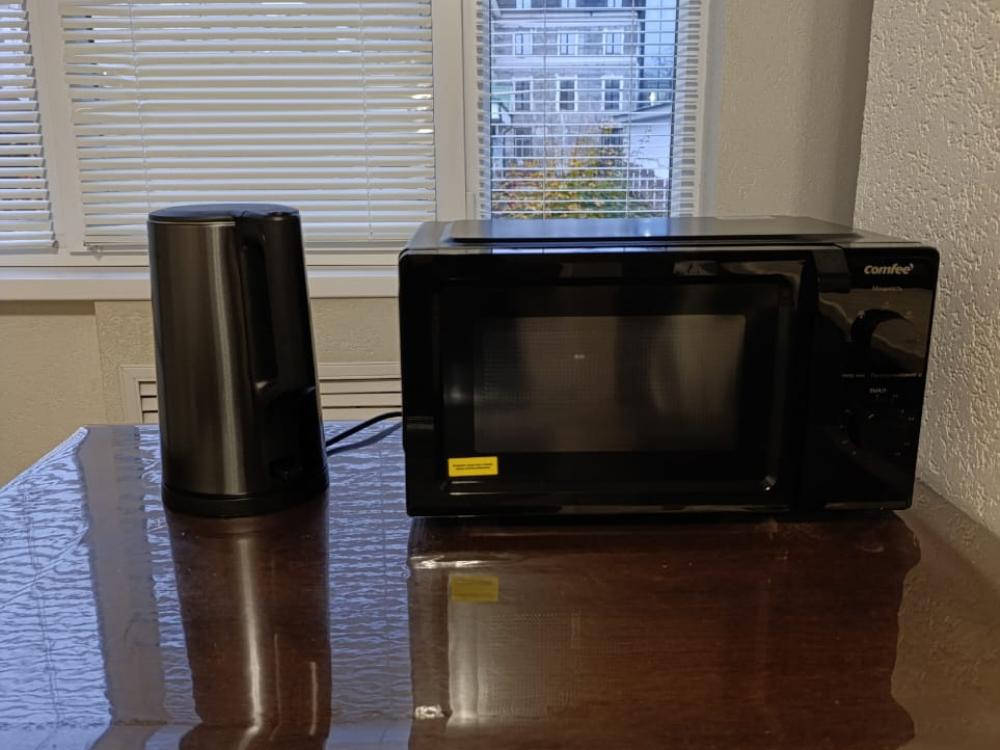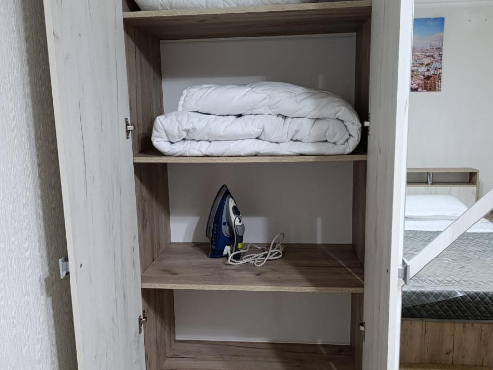 В квартире есть все для комфортного проживания на четыре персоны. Полотенца, постельное белье, подушки и одеяла, а также посуда. В каждой комнате есть телевизор смарт тв. Так же в квартире есть стиралка, фен, утюг, гладильная и сушильная доска, микроволновка, холодильник и электрический чайник, вайфай. После того, как вы забронировали квартиру мы высылаем Вам инструкцию по заселению где указан адрес номер подъезда этаж номер квартиры, у нас бесконтактное заселение и выселение. Код от сейфа который находится возле двери мы высылаем в день заселения. По окончании проживания Вы также кладете ключи в сейф, и предупреждаете о выезде нашу компанию.