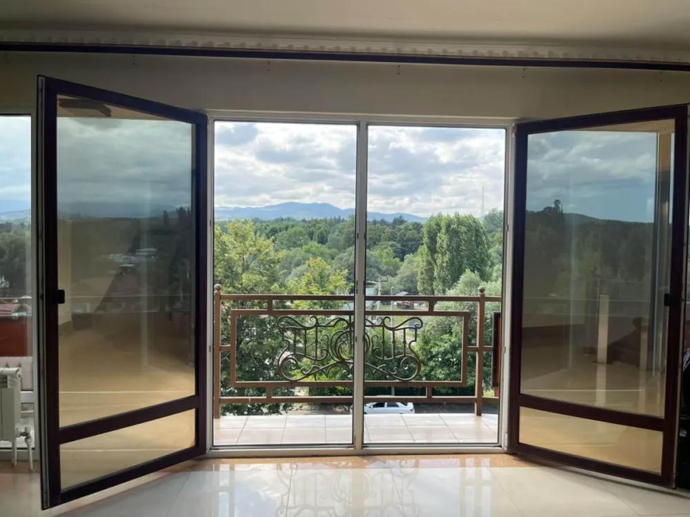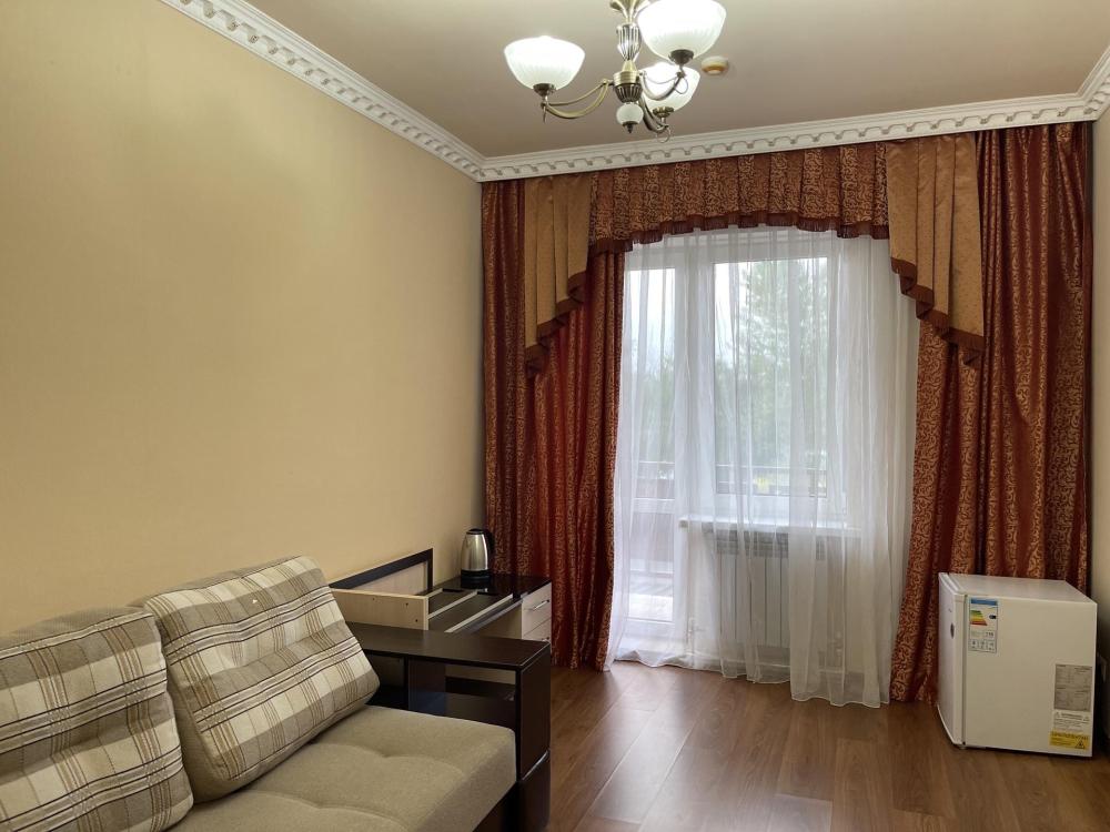 Просторный номер с одной двуспальной кроватью, двухместным раскладным диваном и балконом.