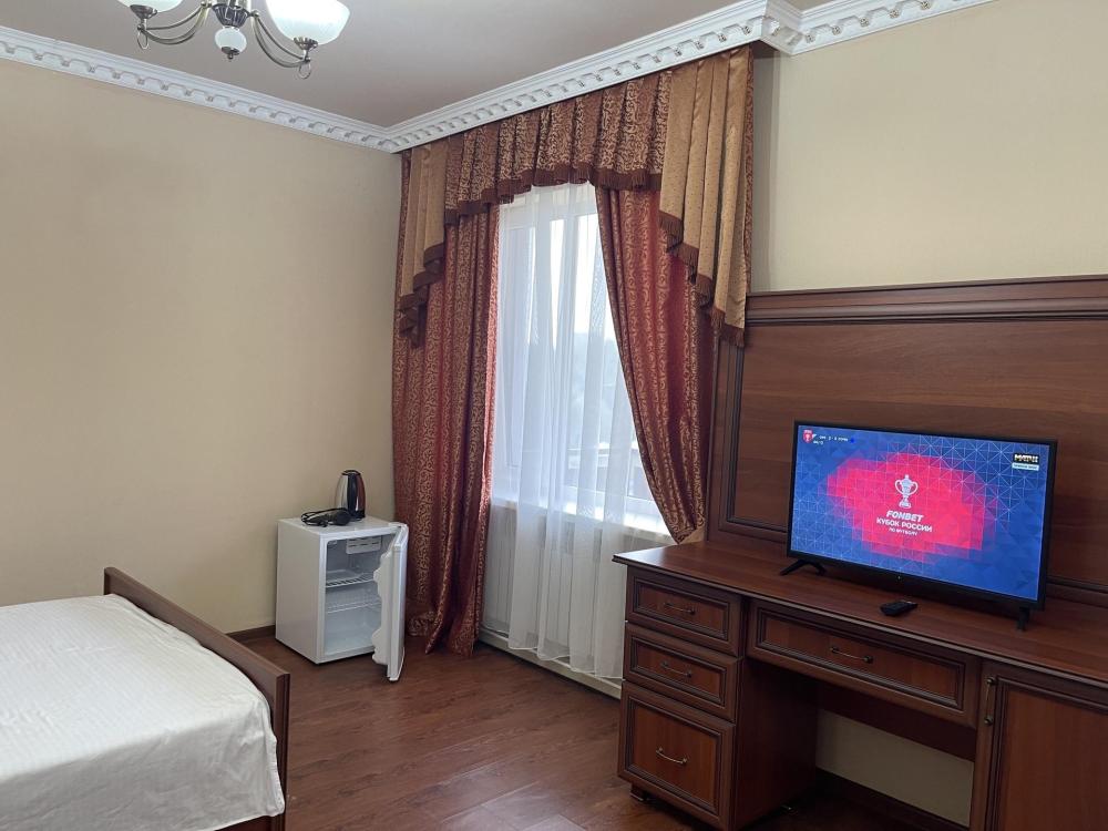 Уютный однокомнатный номер с двумя односпальными кроватями и балконом.