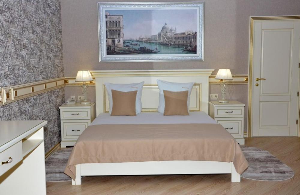 Площадь: 45 кв. м. В номере: двуспальная кровать, диван, Wi-Fi, кондиционер, телефон, фен, спутниковое телевидение, светильник, холодильник, вешалки, обеденный стол, письменный стол, стулья, шкаф для одежды, ковер. В ванной комнате: ванная комната, душевая кабина, гигиенические средства, туалет, раковина, тапочки, халаты.