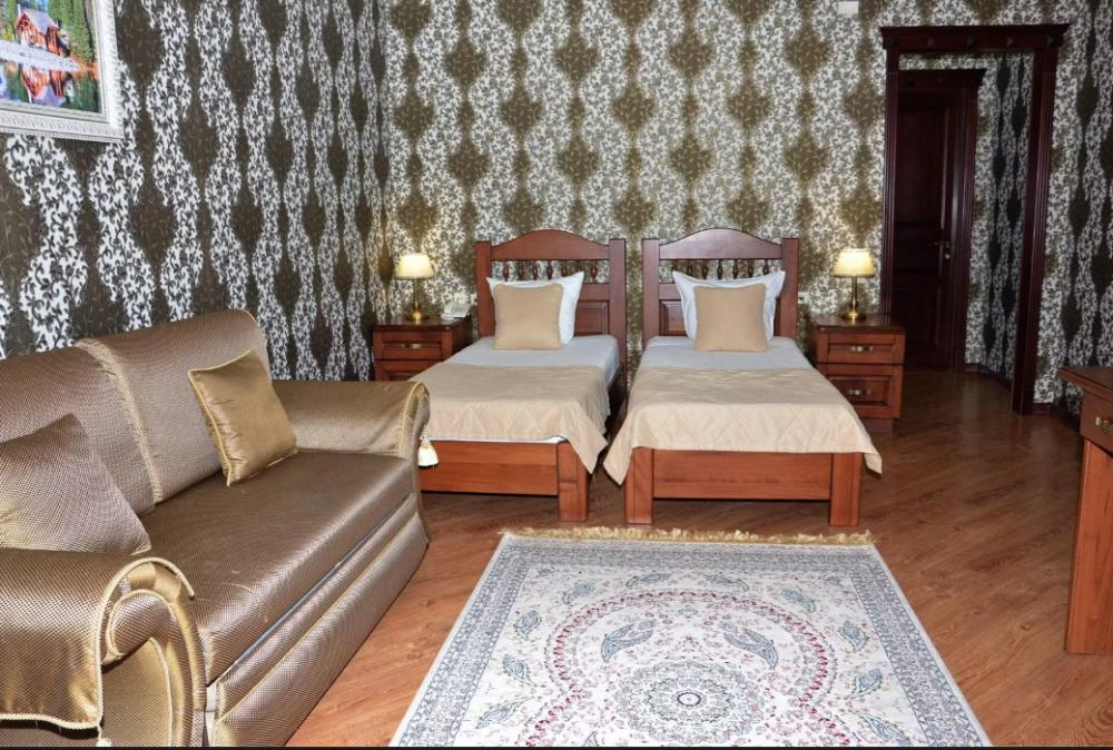 В номере: две односпальные кровати, Wi-Fi, кондиционер, телефон, фен, спутниковое телевидение, светильник, холодильник, вешалки, обеденный стол, письменный стол, стулья, шкаф для одежды, ковер. В ванной комнате: ванная комната, душевая кабина, гигиенические средства, туалет, раковина, тапочки, халаты.