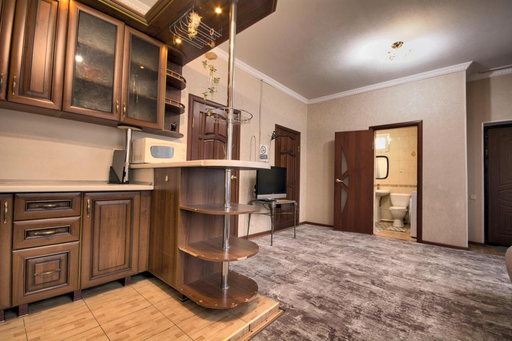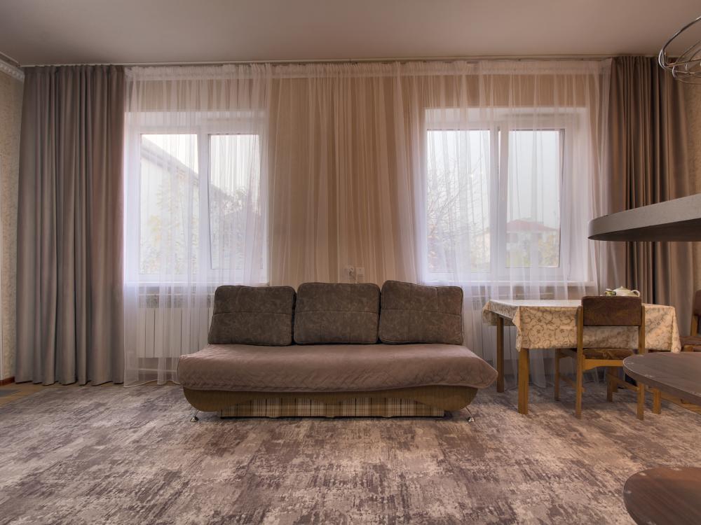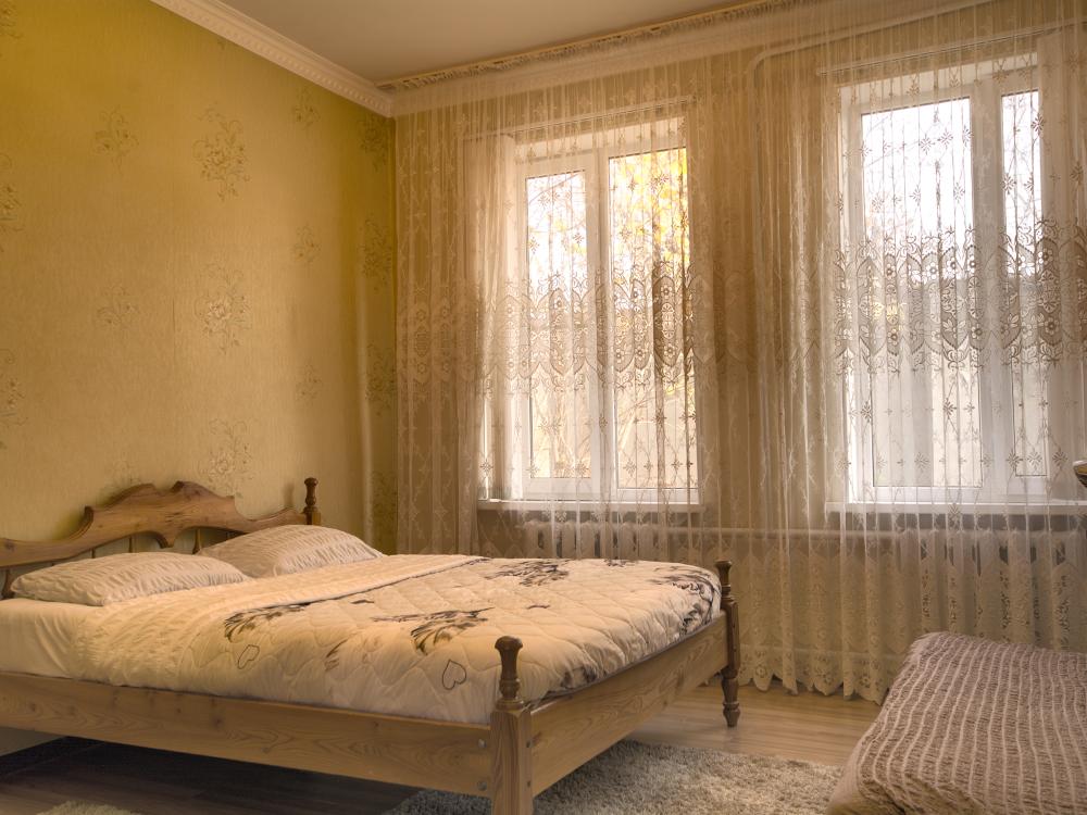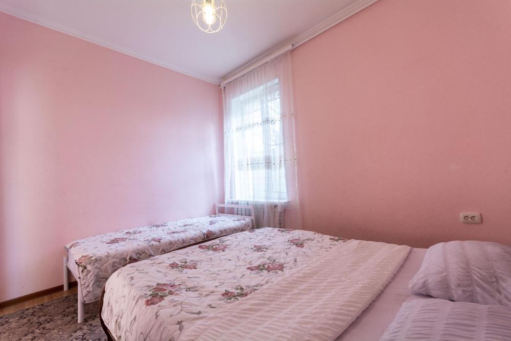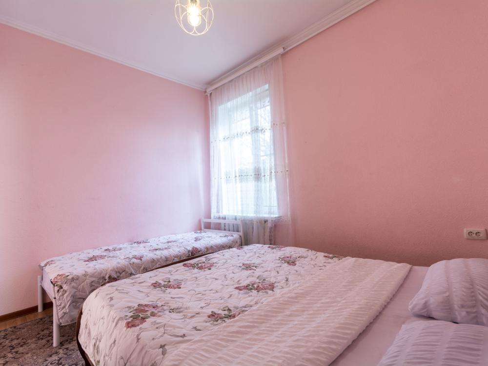 Коттедж рассчитан на 10 спальных мест и оборудован всем необходимым для комфортного проживания. В коттедже: 2 двуспальные кровати, 2 односпальные кровати и 2 раскладных двуспальных дивана. Кухня с обеденной зоной, оборудована всей необходимой техникой и посудой: холодильник, чайник, микроволновая печь. Также в коттедже имеется телевизор, стиральная машина, индивидуальное отопление и совмещенный санузел с ванной. Гостям предоставляются полотенца и постельное белье.