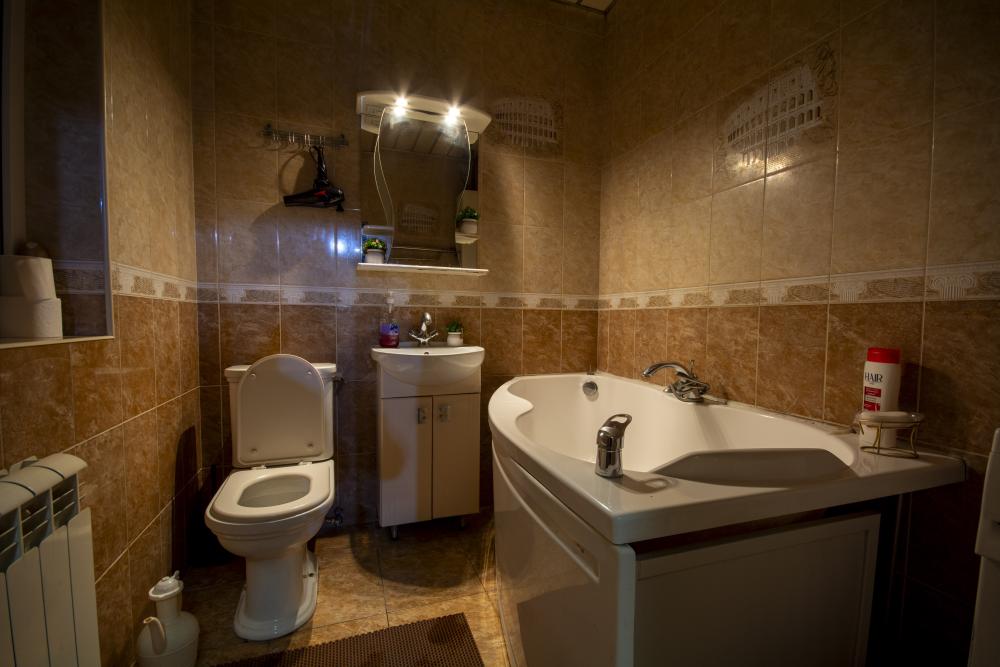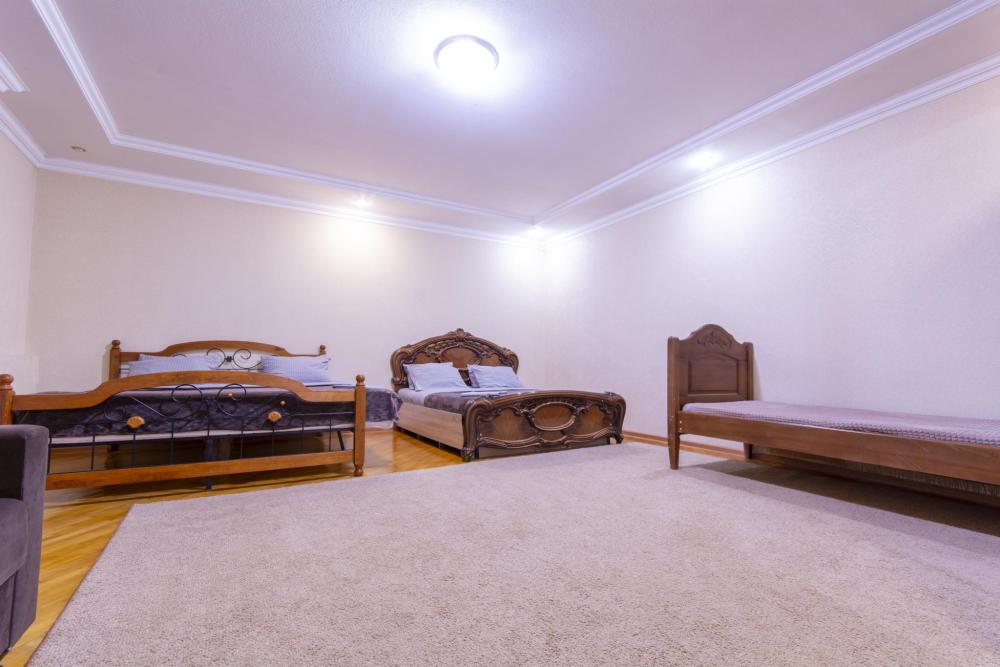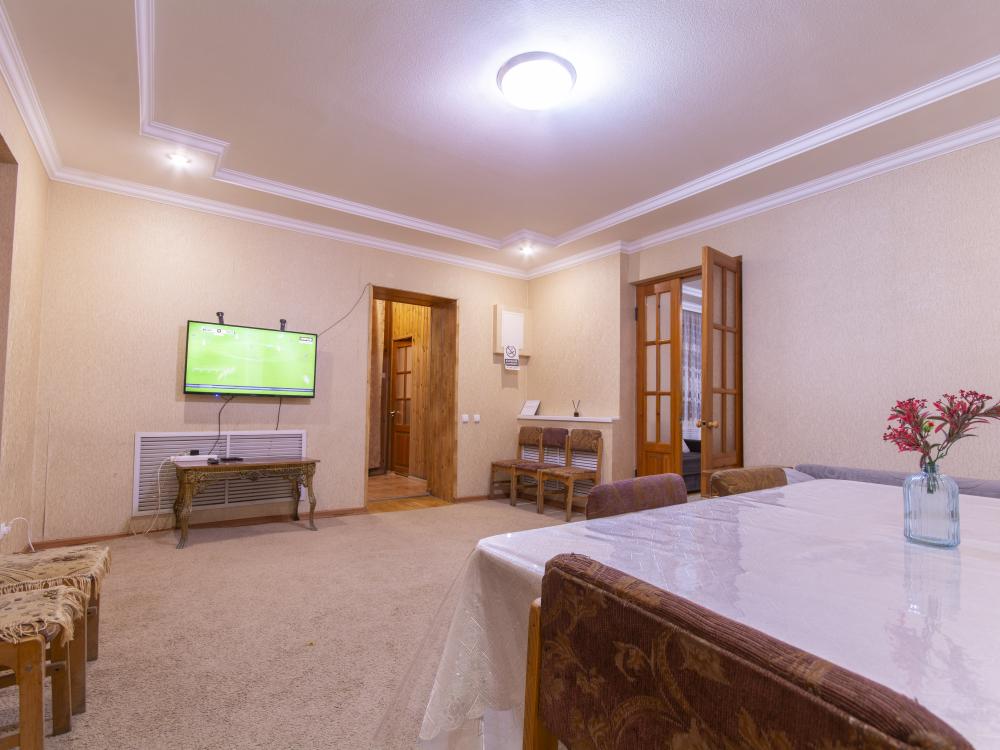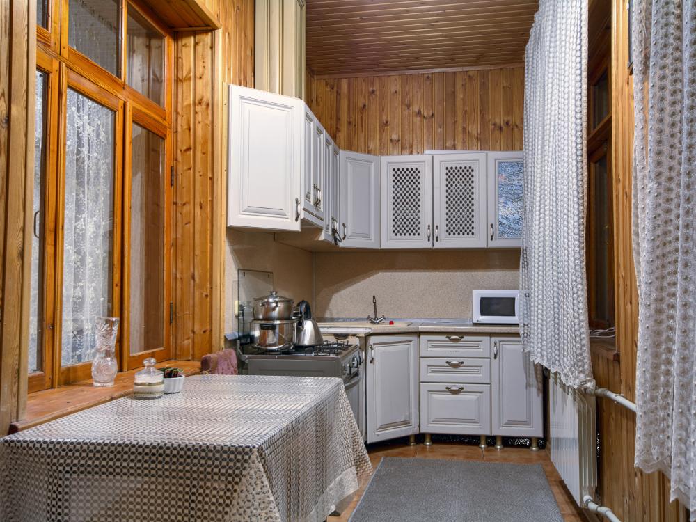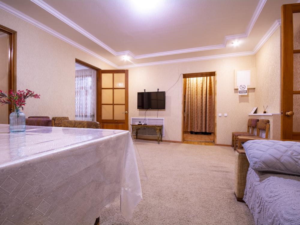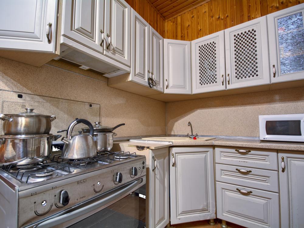 Коттедж рассчитан на 20 спальных мест и оборудован всем необходимым для комфортного проживания. В коттедже: 5 двуспальных кроватей, 2 односпальные кровати и 4 раскладных двуспальных дивана. Кухня с обеденной зоной, оборудована всей необходимой техникой и посудой: холодильник, чайник, микроволновая печь. Также в коттедже имеется телевизор, стиральная машина, фен, индивидуальное отопление и совмещенный санузел с ванной. Гостям предоставляются полотенца и постельное белье.