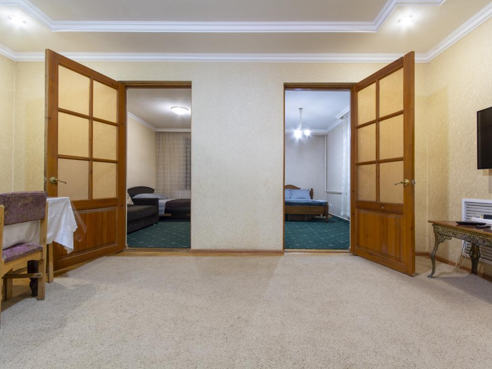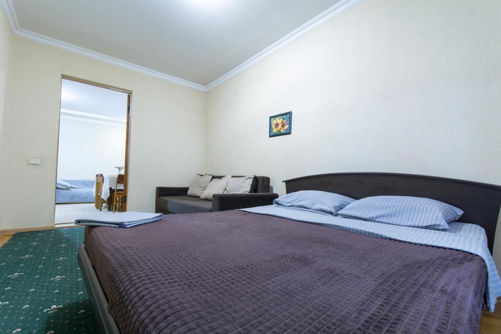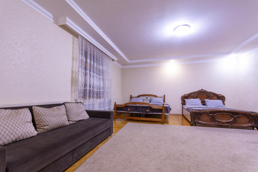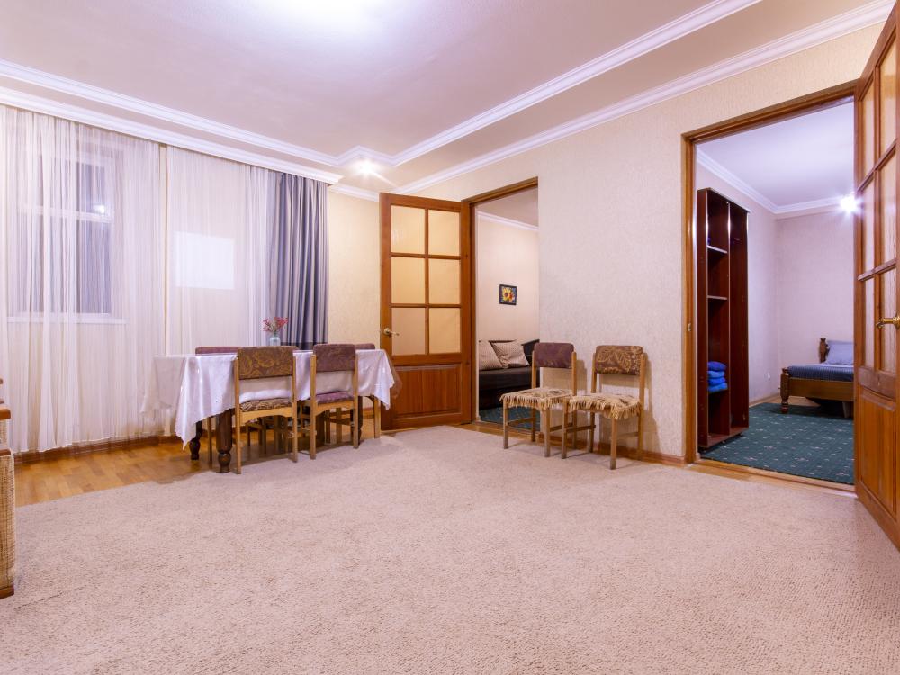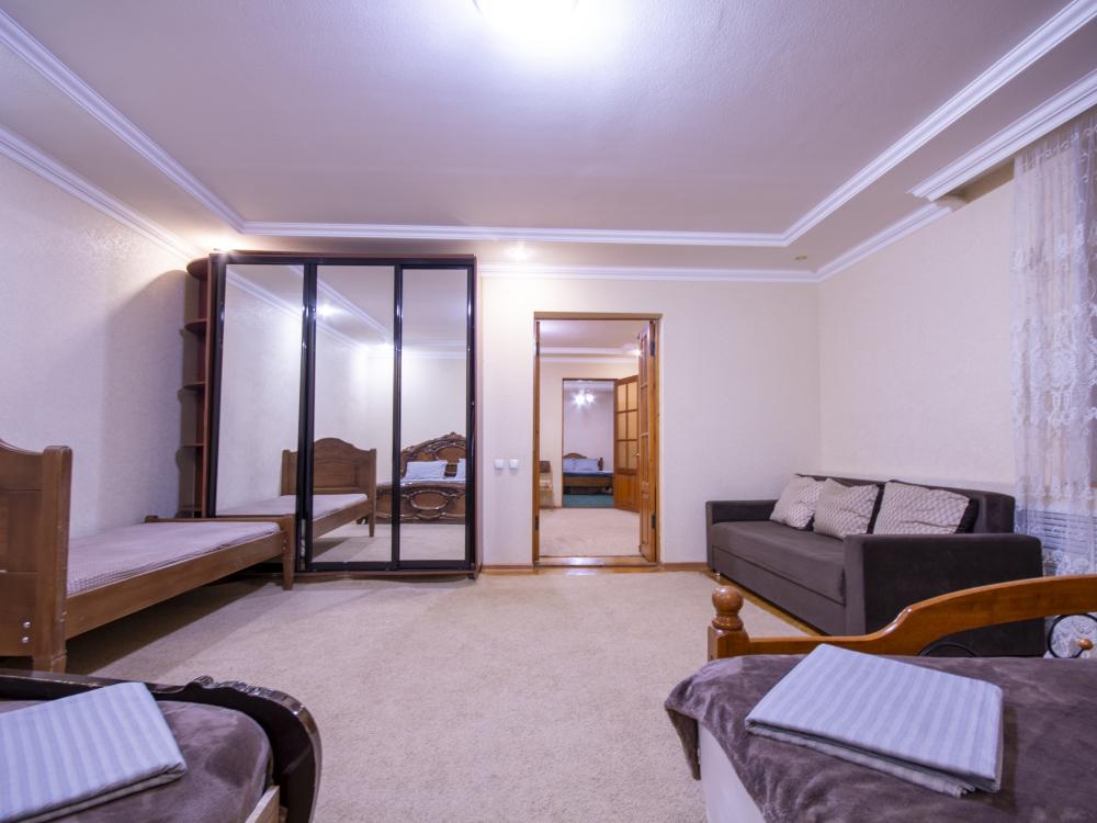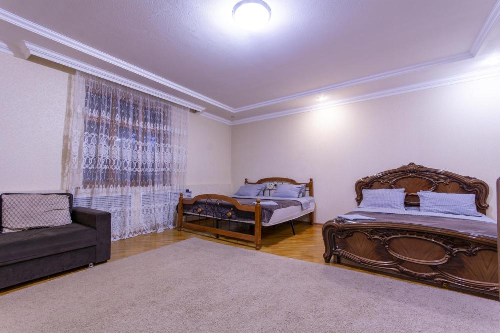 Коттедж рассчитан на 20 спальных мест и оборудован всем необходимым для комфортного проживания. В коттедже: 5 двуспальных кроватей, 2 односпальные кровати и 4 раскладных двуспальных дивана. Кухня с обеденной зоной, оборудована всей необходимой техникой и посудой: холодильник, чайник, микроволновая печь. Также в коттедже имеется телевизор, стиральная машина, фен, индивидуальное отопление и совмещенный санузел с ванной. Гостям предоставляются полотенца и постельное белье.