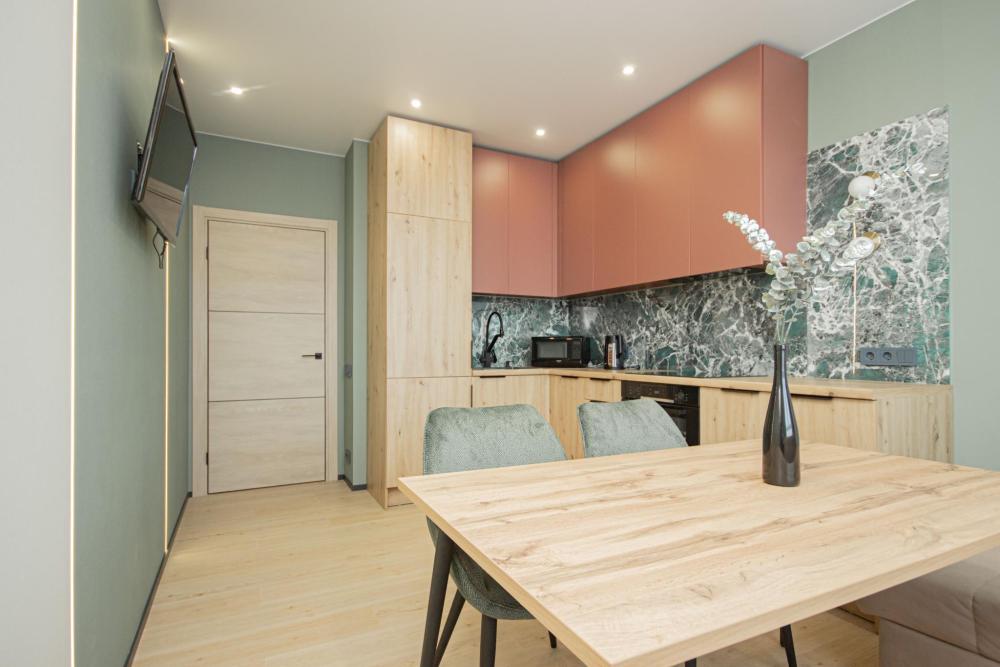 Двуспальная кровать, полностью оборудованная кухня с техникой: холодильник, плита, микроволновая печь, чайник, посуда, обеденный стол со стульями. Выглаженное постельное белье и махровые полотенца, набор принадлежностей для душа: гель для душа, шампунь, мыло Современная стиральная машина, чтобы вещи всегда были чистые. Высокоскоростной, беспроводной интернет (WI-FI), ЖК телевизор.