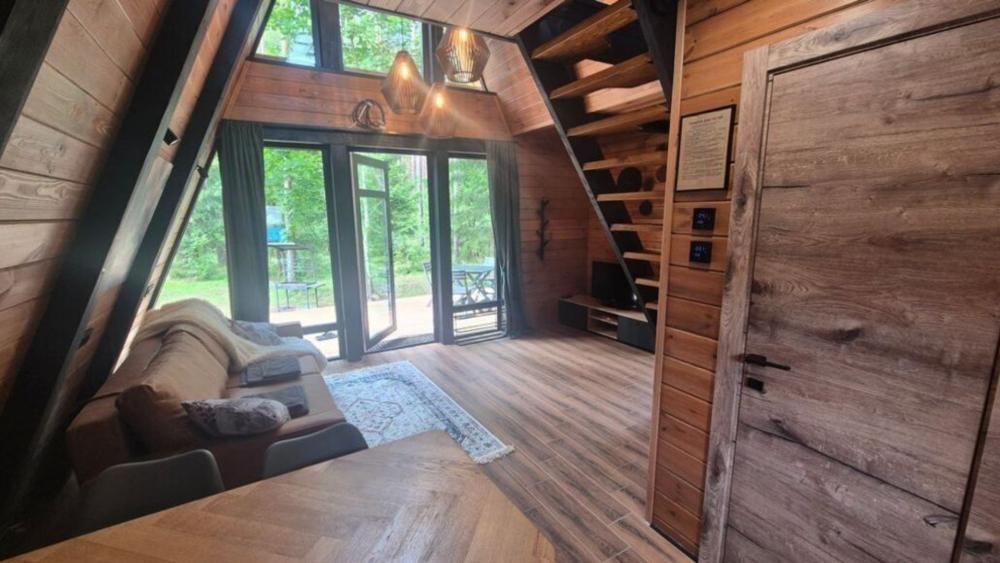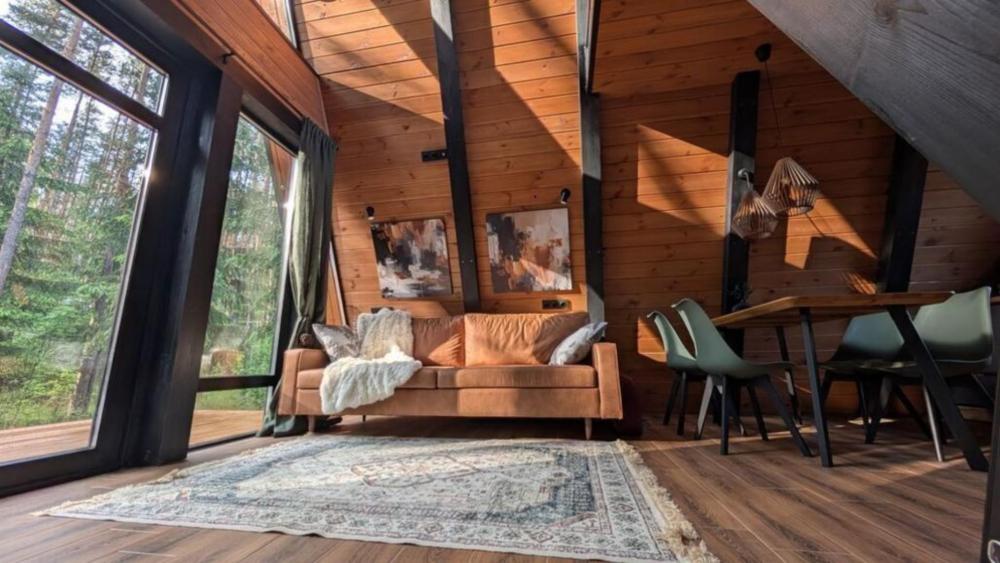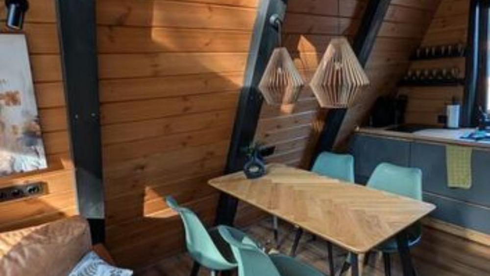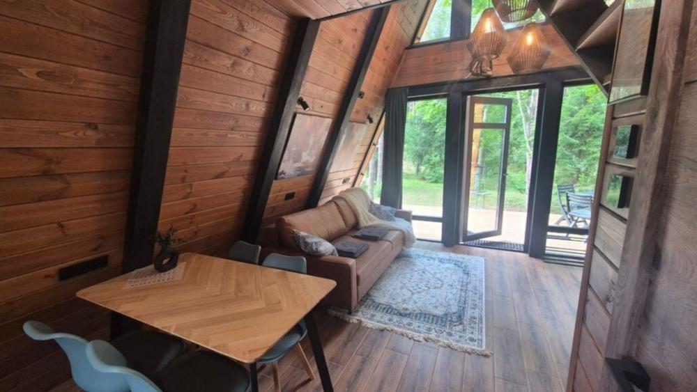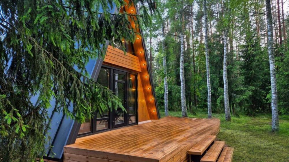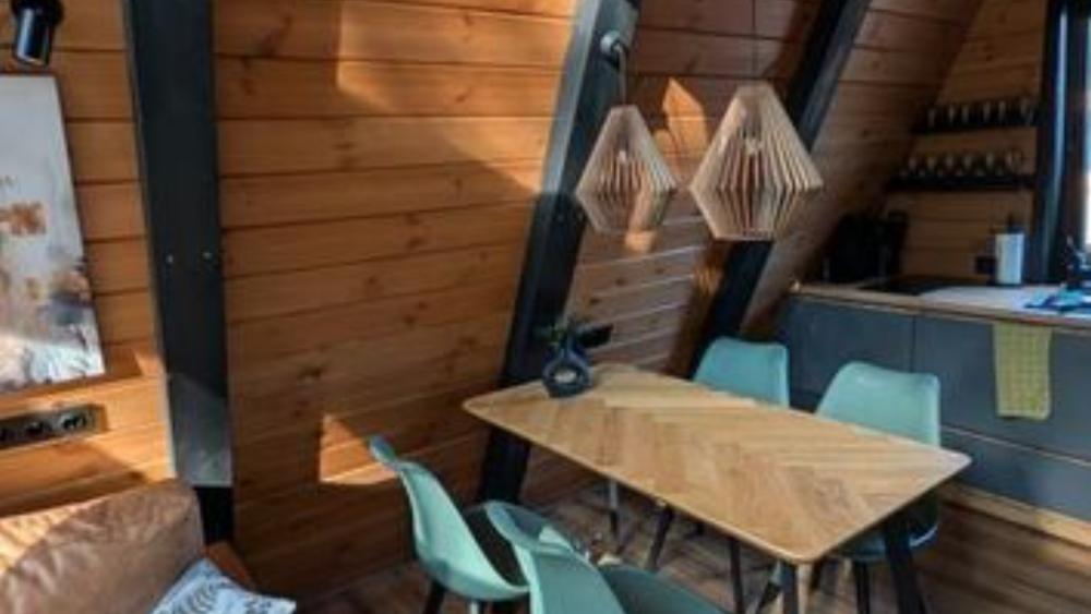Уютный А-фрейм вместимостью до 4 человек с одной спальней. Внутри гостей ждет: стиральная машина, интернет Wi-Fi, телевизор, кухня, ванные принадлежности
