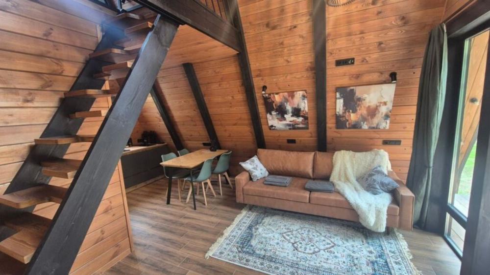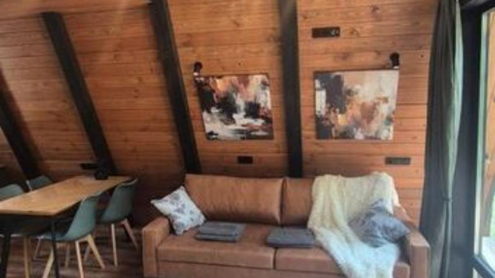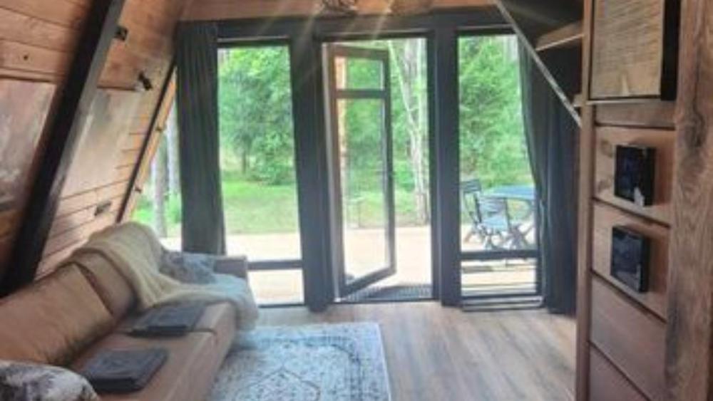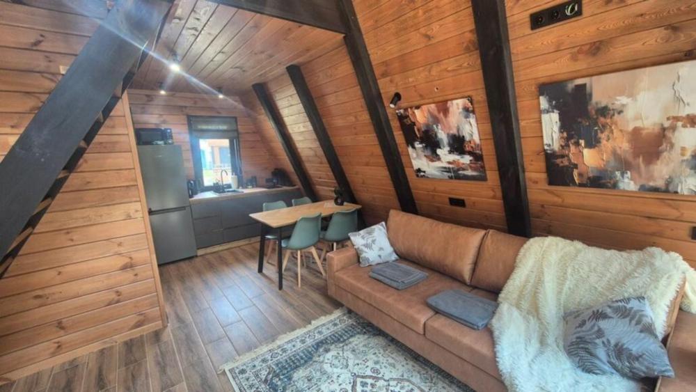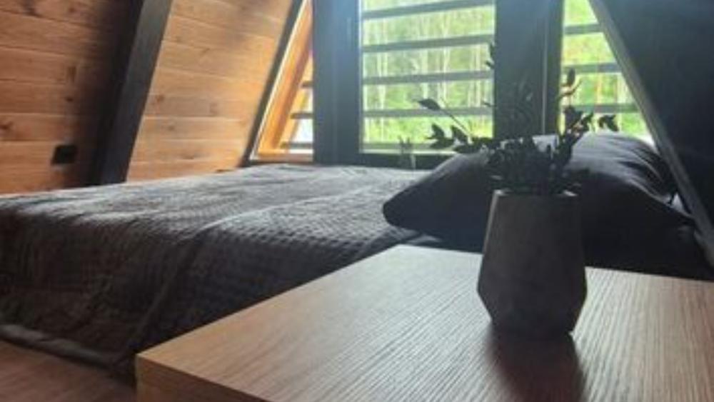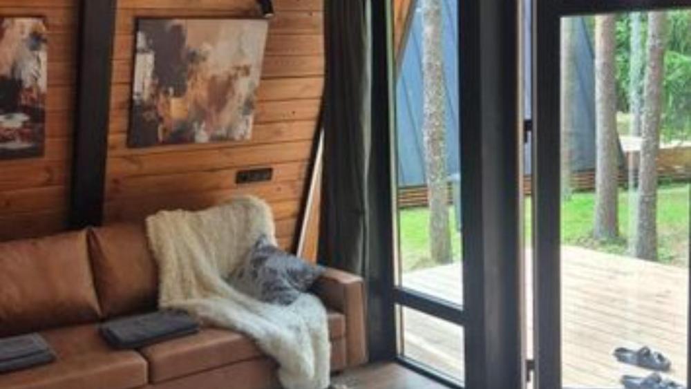 Уютный А-фрейм вместимостью до 4 человек с одной спальней. Внутри гостей ждет: стиральная машина, интернет Wi-Fi, телевизор, кухня, ванные принадлежности