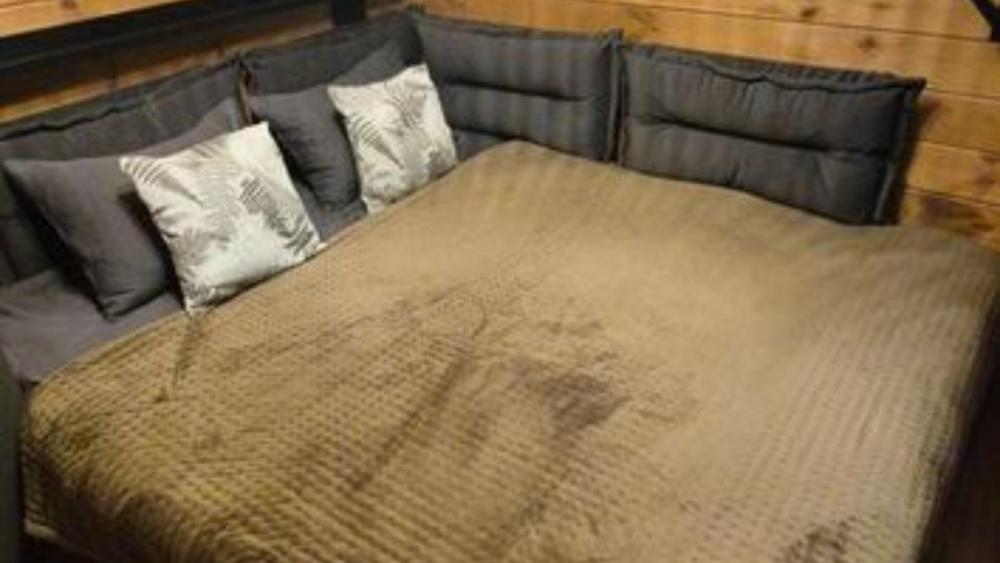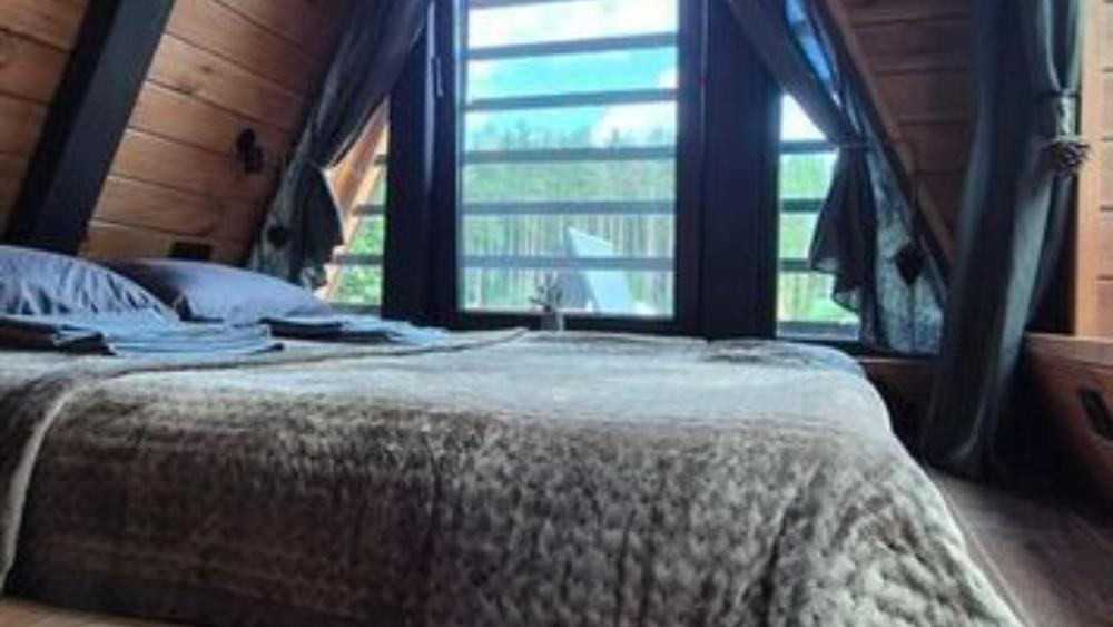 Уютный А-фрейм вместимостью до 6 человек с двумя спальнями. Внутри гостей ждет: стиральная машина, интернет Wi-Fi, телевизор, кухня, ванные принадлежности