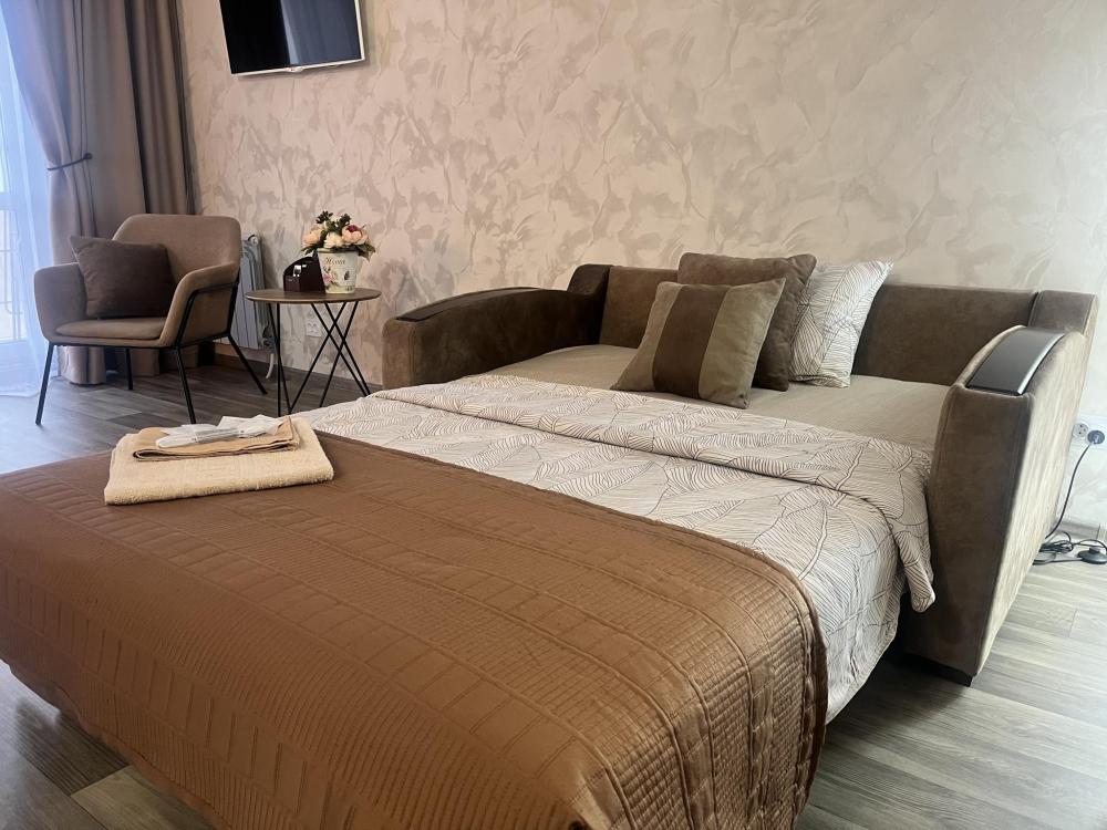 В квартире есть все необходимое для комфортного пребывания гостей: 2-х спальная кровать (160*200), раскладной диван (спальное место 125*200), спальных мест 2+1,телевизор, WI-FI, гладильная доска, утюг, стиральная машина, фен, на кухне имеется: посудомоечная машина, холодильник, микроволновая печь, варочная панель, чайник, кофемашина Nespresso (приветственные капсулы прилагаются), вся необходимая посуда.