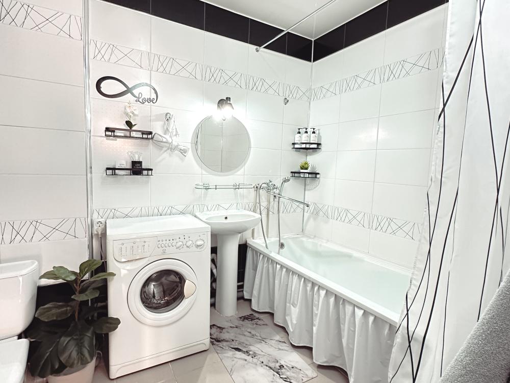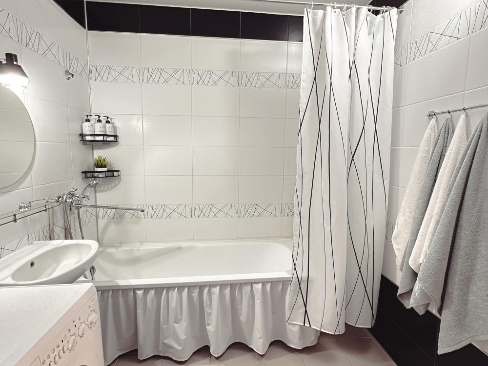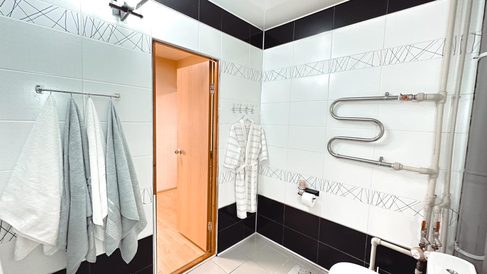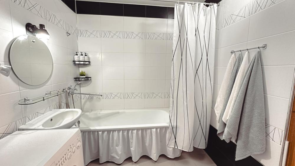 Всё уже готово для вашего пребывания: ✔ Современная мебель, свежее бельё и полотенца ✔ Полная кухня (плита, холодильник, СВЧ, посуда) ✔ Техника: Wi-Fi, ТВ, стиральная машина, фен. ✔ Бесплатная парковка и отличная локация — всё рядом! ✔ Банный вафельный халат - за отдельную плату! ✔ Удобные спальные места: двуспальная кровать, двуспальный диван, односпальный диван. ✔ Рабочее место ✔ Столик для ребенка