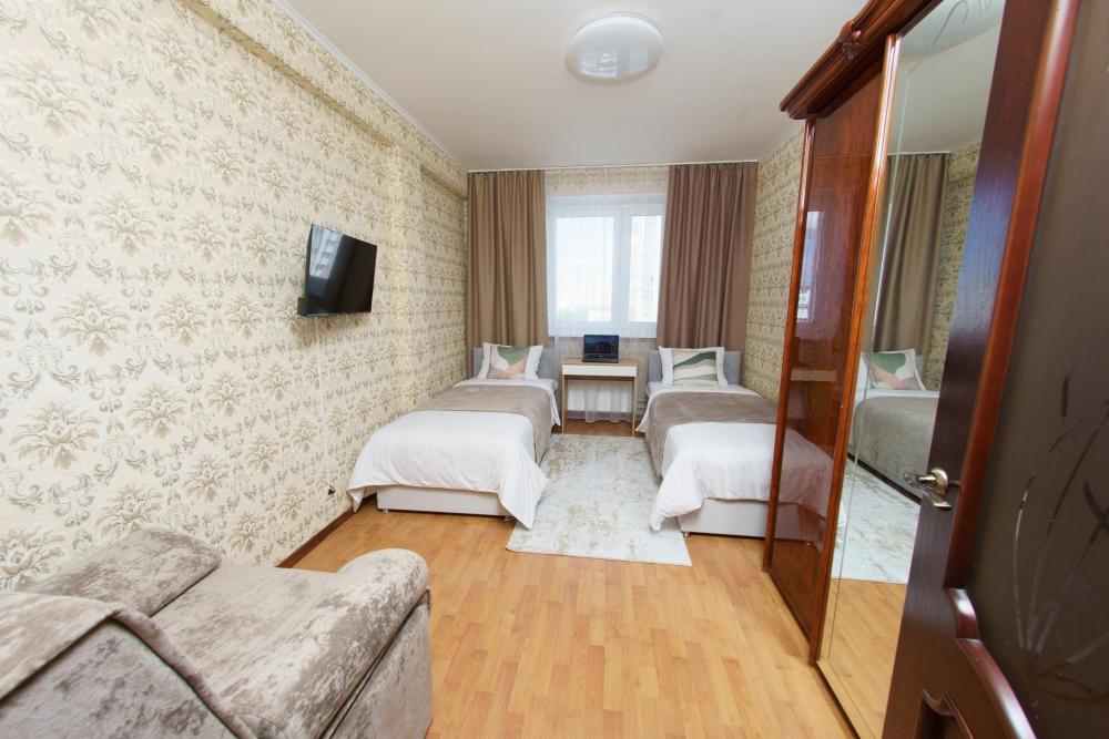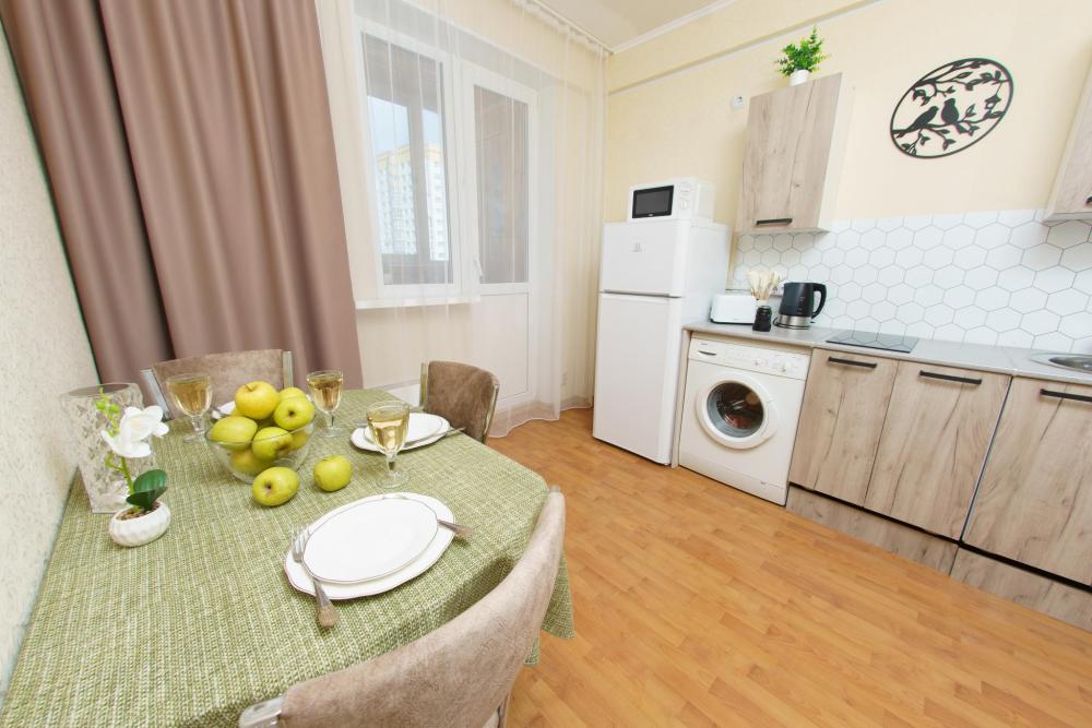 Всё уже готово для вашего пребывания: современная мебель, свежее бельё и полотенца. Кухня полностью укомплектована всей необходимой техникой и посудой: холодильник, индукционная варочная панель, микроволновая печь, электрочайник, полный набор посуды для приготовления и приема пищи. Техника: Wi-Fi, ТВ, стиральная машина, сушилка для белья, фен, телевизор в каждой комнате. Удобные спальные места: двуспальная кровать, две односпальных кровати, кресло-кровать раскладное, двухспальный диван. Банный вафельный халат (за отдельную плату)