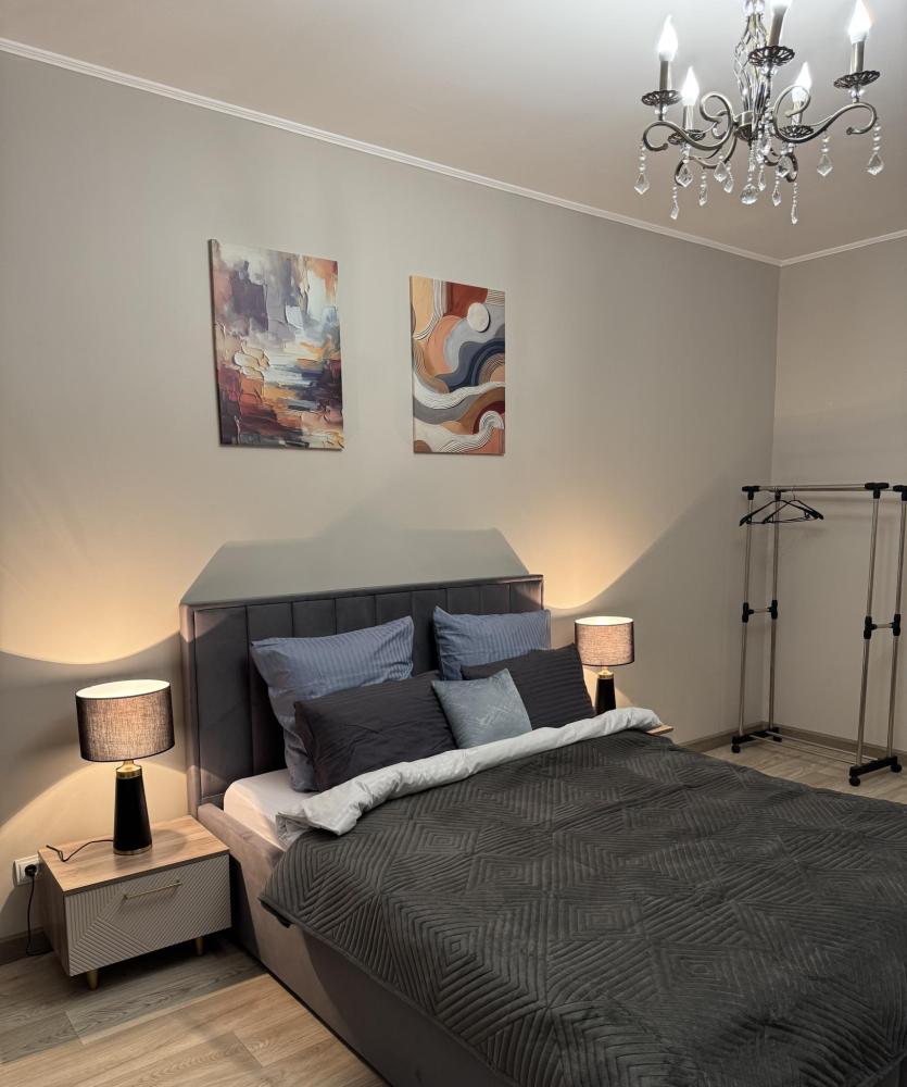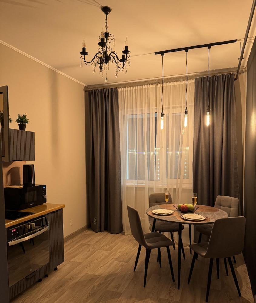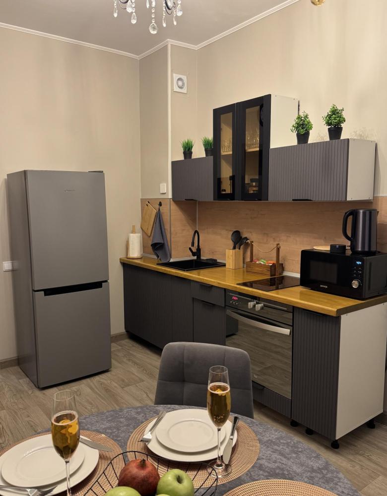 Уютные однокомнатные апартаменты, оборудованные всем необходимым для комфортного проживания. Апартаменты рассчитаны на 4 гостей: двуспальная кровать, раскладной диван. В апартаментах: телевизор, умная колонка, напольная вешалка для одежды, кухня с обеденной зоной и всей необходимой техникой, посудой, санузел с ванной и стиральной машиной.