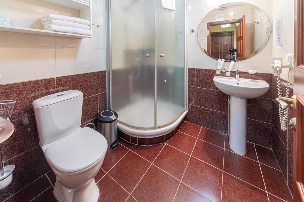 Удобные и практичные номера с двуспальной кроватью, общей площадью до 17 м2, оформлены в классическом стиле и оснащены всем необходимым.