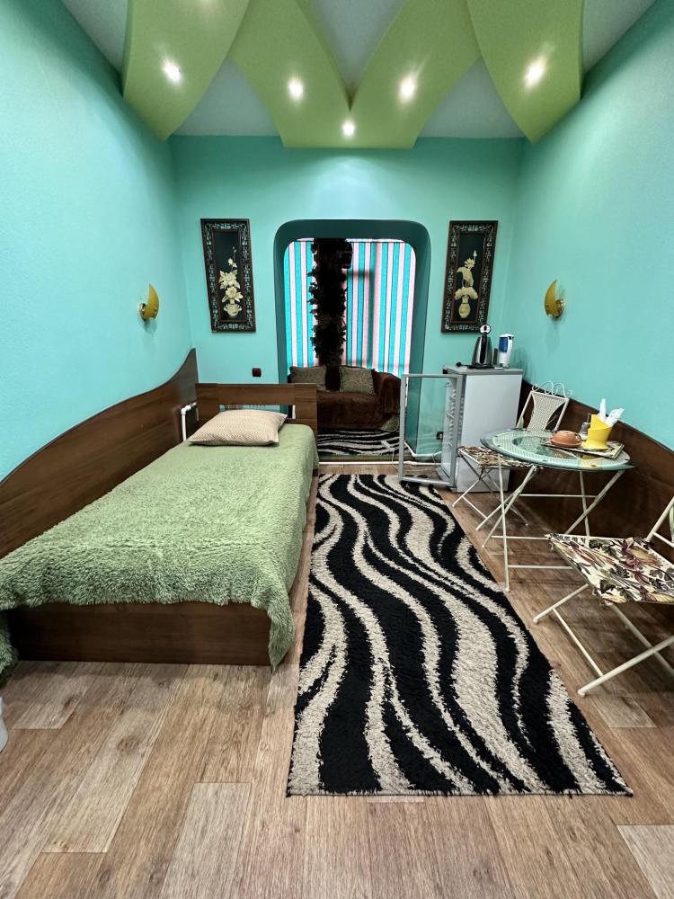Уютный номер, оснащен двумя односпальными кроватями, мини диваном, столом, стульями. Удобства свои напротив номера.