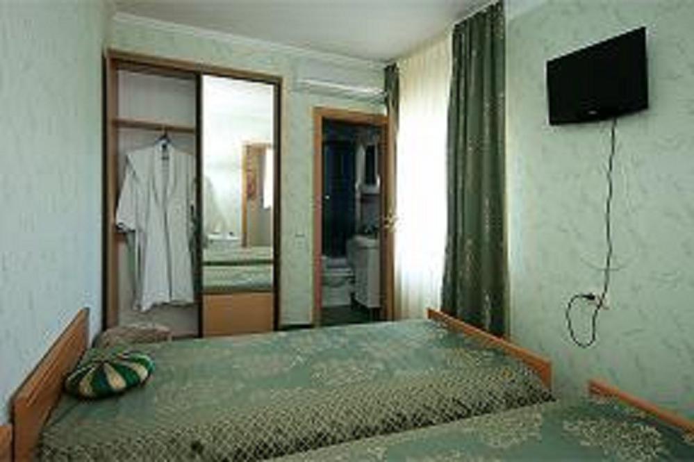 Двуспальная кровать, диван-кровать, шкаф, пуфики, прикроватные тумбочки, журнальный столик, туалетный столик, комод, вешалка, зеркало, эл чайник, посуда. Есть номера без балкона, стоимость уточнять по телефону. Доп место платно - 250 руб.