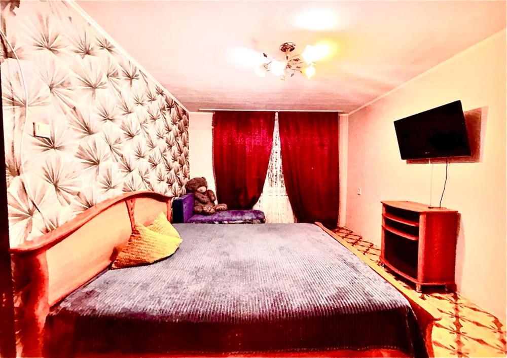 Уютные однокомнатные апартаменты, оборудованные всем необходимым для комфортного проживания. В апартаментах двуспальная кровать, кресло-кровать, оборудованная техникой и посудой кухня, обеденная зона, санузел.