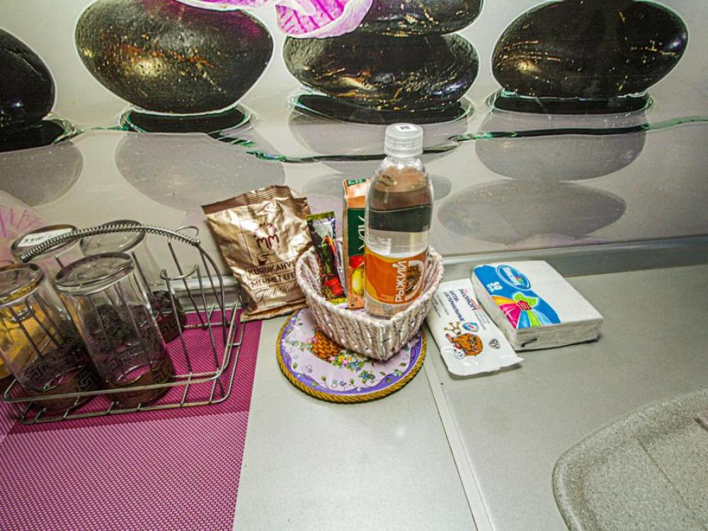 В апартаментах имеется все необходимое для комфортного проживания : двуспальный диван, кухня со всем необходимым (холодильник, варочная панель, микроволновая печь, чайник, а так же посуда, приборы, просторный балкон, стиральная машина, фен, утюг, гладильная доска, сушилка для одежды, Smart TV (онлайн-кинотеатры, RUTUBE) и высокоскоростной Wi-Fi, отдельное рабочее место, шкаф, шампунь, гель для душа, жидкое мыло, ватные палочки, ватные диски, стиральный порошок, чай, кофе, сахар, соль, масло. На каждого гостя предусмотрено по 2 полотенца.