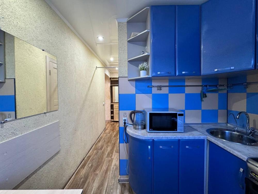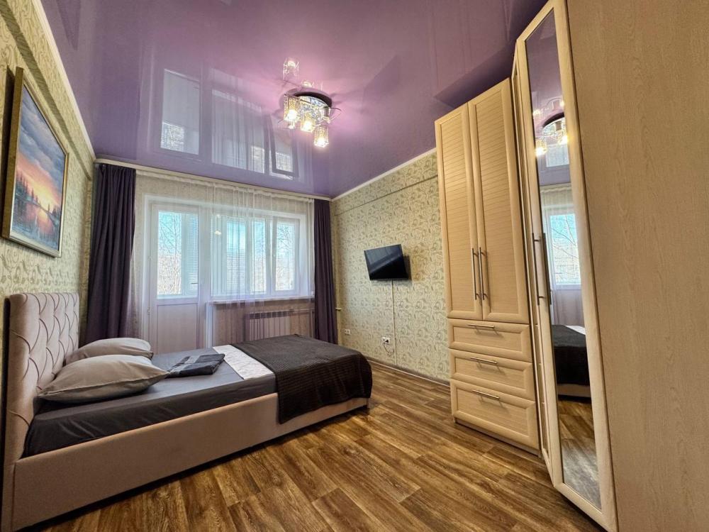 Двухкомнатная квартира с большой двуспальной кроватью и раскладным диваном. Спальных мест в апартаментах: 2+2+1. В квартире есть все необходимое для проживания вдали от дома: Wi-Fi, телевидение, плита, микроволновая печь, холодильник, чайник, постельное белье и полотенца, стиральная машина, сушилка для белья, утюг, гладильная доска, фен. К услугам гостей ванные и туалетные принадлежности. По запросу возможная уборка и замена белья во время длительного проживания. Апартаменты подходят для проведения для романтического вечера или деловой командировки.