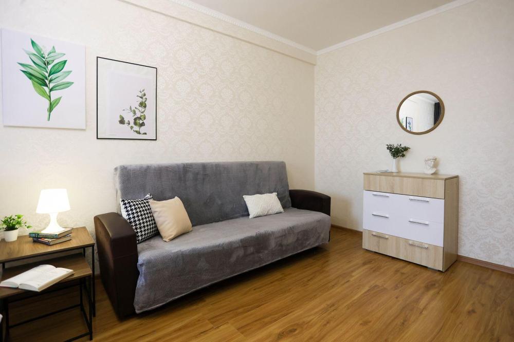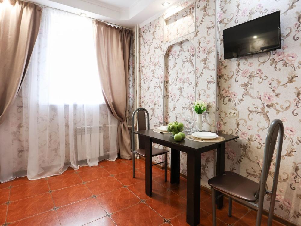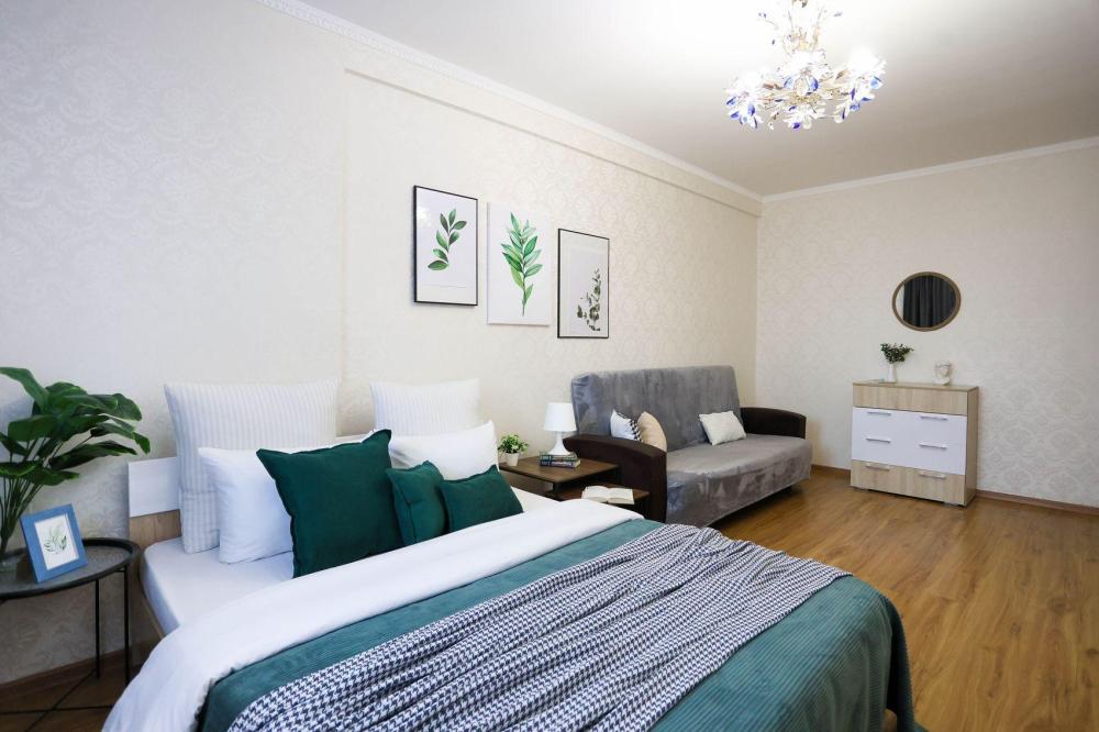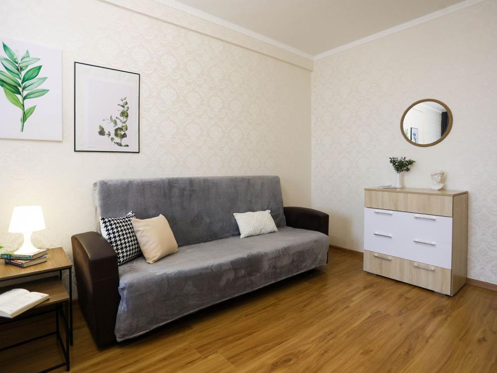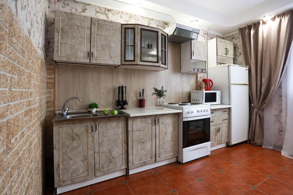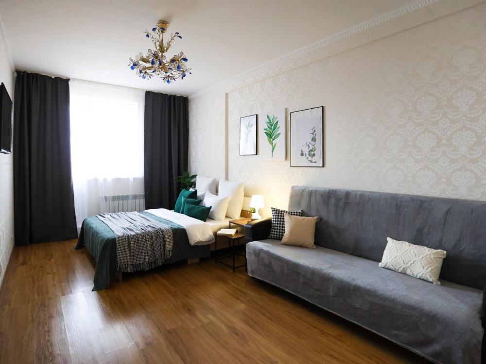 Стильная уютная квартира с новым евроремонтом и просторной кухней в центре города ✔ Комфортная однокомнатная квартира с двумя раздельными двуспальными местами, свежим евроремонтом, просторной кухней, раздельным санузлом, оборудованным рабочим уголком, атмосферным интерьером и отличным расположением на восьмом этаже, в самом центре города не оставит равнодушным ни одного гостя. ✔ В атмосферной комнате с красивым потолком размещена прекрасная двуспальная кровать с ортопедическим матрасом. Также есть мягкий удобный раскладной диван, образующий второе комфортное двуспальное место. Плотные портьеры обеспечат качество сна. ЖК-телевизор, высокоскоростной Wi-Fi, журнальный стол и прикроватные тумбы со светильниками создают атмосферу настоящего домашнего уюта и комфорта. Для обеспечения результативного рабочего процесса оборудована соответствующая зона. ✔ Просторная стильная кухня оборудована колоритным гарнитуром, всей необходимой современной мебелью и техникой, а также полным комплектом посуды на 4 персоны для приготовления полноценного домашнего рациона. Уютная аппетитная обеденная зона располагает к приятной трапезе. ✔ Санузел оснащен белоснежной сантехникой и современной стиральной машиной-автомат. Преимущество санузла в том, что он раздельный. Предусмотрено все до мелочей для полноценного личного ухода гостей. Что находится РЯДОМ: кинотеатр Мир, ТЦ Европа Сити, ТЦ Премьер, рынок Сибирский балаган, рынок Славтэк, городская поликлиника №2, магазин Дружба, Сбербанк, круглосуточный магазин Атлант, магазин постельного белья Все для сна, магазин Магнит, магазин Магнит Косметик, магазин Мишка на севере, городская центральная библиотека, аптека Здравсити, магазин Мясная Лавка, ТЦ Милана.