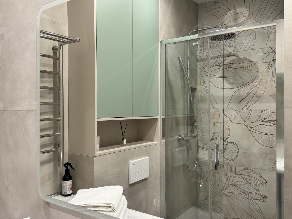 Стильные спокойные 1-комнатные апартаменты со стеклянной перегородкой в спокойных базовых тонах общей площадью 37 м.кв. В этих апартаментах с комфортом разместятся до 4х гостей: есть большая двухспальная кровать и комфортный раскладывающийся диван-кровать. Апартаменты расположены на 11 этаже в современном апарт-кoмплeкcе бизнеc клаccа "KM Тауэр Плaза" в caмoм центрe Hижнeгo Hовгoрoда. В пешей доступности главная пешеходная улица города, Кремль, музеи, театры, торговые центы, кафе и рестораны, а также большой новый аквапарк. Стильный дизайн, качественные материалы отделки, высокий уровень сервиса - отличительная особенность наших апартаментов. Всё в хорошем и полностью рабочем состоянии, ничего не скрипит и не отваливается. Всё функционирует, не омрачая вам настроение. В апартаментах предусмотрено абсолютно всё для удобства проживания: Круглосуточное бесконтактное удалённое заселение - не надо никого ждать или дозваниваться, приехали - заселились. Холодильник, чайник, плита, духовка, микроволновка, кувшин-фильтр для питьевой воды, посуда и приборы - всё есть. Стиральный порошок, средство для мытья посуды, мыло, швабра, совок и куча тряпочек для поддержания чистоты. Если нет желания покидать номер, вы можете заказать доставку отличной еды из ресторана, расположенного на 1м этаже. Едва прибыв к нам, вы сразу можете попить чай с дороги. Соль и сахар есть - не придётся покупать целую упаковку. Генеральная уборка паровым очистителем, обработка контактных поверхностей антисептиками перед каждым заездом. Стиральная машина и стиральный порошок сушилка, плечики, утюг и гладильная доска - вы будете выглядеть сногсшибательно. Туалетная бумага, шампунь, гель для душа, мыло для рук, ватные диски и палочки, зубная паста, полотенца и тапочки, фен. Стабильный интернет с хорошей скоростью, большой телевизор и смарт-тв для просмотра любимых сериалов. Комфортная большая кровать, с удобным качественным матрасом Ormatek и белоснежным постельным бельём из сатина. Комфортный диван-кровать со спальными местами для 2х человек. Освежающая прохлада летом и согревающее тепло зимой - у нас всегда комфортный климат для проживания. Услуга "Мать и Дитя" Детский стульчик для кормления, детская кроватка и постельное белье - 1000р Парковка на улице за шлагбаумом, при наличии мест - бесплатно. Парковка в подземном паркинге 900 р/сутки (имеется автомойка). Каждый день с 9:00 до 12:00 в прекрасном ресторане на первом этаже вы можете заказать комплексный завтрак. Расчётное время заезда - 14:00, выезда - 12:00. Заезд ранее 14:00 возможен в случае, если квартира свободна и готова к заселению. Выезд позже 12:00 так же возможен в случае, если квартира на это время свободна. ( по согласованию). В случае раннего заезда или позднего выезда, не зависимо от количества часов взимается плата в размере 50% от суточной стоимости посуточного проживания! Отчётные документы предоставляются по запросу. Бронь закрепляется за вами после внесения предоплаты. Инструкция по заселению поступает после полной оплаты.