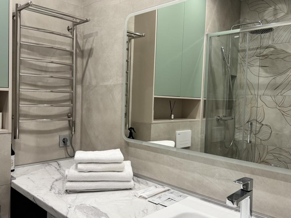 Просторные современные апартаменты с дизайнерским ремонтом общей площадью 45 м.кв. В этих апартаментах с комфортом разместятся до 4х гостей: есть большая двухспальная кровать и комфортный раскладывающийся диван-кровать. Апартаменты расположены на 8 этаже в современном апарт-кoмплeкcе бизнеc клаccа "KM Тауэр Плaза" в caмoм центрe Hижнeгo Hовгoрoда. В пешей доступности главная пешеходная улица города, Кремль, музеи, театры, торговые центы, кафе и рестораны, а также большой новый аквапарк. Стильный дизайн, качественные материалы отделки, высокий уровень сервиса - отличительная особенность наших апартаментов. Всё в хорошем и полностью рабочем состоянии, ничего не скрипит и не отваливается. Всё функционирует, не омрачая вам настроение. В апартаментах предусмотрено абсолютно всё для удобства проживания: Круглосуточное бесконтактное удалённое заселение - не надо никого ждать или дозваниваться, приехали - заселились. Холодильник, чайник, плита, духовка, микроволновка, кувшин-фильтр для питьевой воды, посуда и приборы - всё есть. Стиральный порошок, средство для мытья посуды, мыло, швабра, совок и куча тряпочек для поддержания чистоты. Если нет желания покидать номер, вы можете заказать доставку отличной еды из ресторана, расположенного на 1м этаже. Едва прибыв к нам, вы сразу можете попить чай с дороги. Соль и сахар есть - не придётся покупать целую упаковку. Генеральная уборка паровым очистителем, обработка контактных поверхностей антисептиками перед каждым заездом. Стиральная машина и стиральный порошок сушилка, плечики, утюг и гладильная доска - вы будете выглядеть сногсшибательно. Туалетная бумага, шампунь, гель для душа, мыло для рук, ватные диски и палочки, зубная паста, полотенца и тапочки, фен. Стабильный интернет с хорошей скоростью, большой телевизор и смарт-тв для просмотра любимых сериалов. Комфортная большая двухспальная кровать, с удобным качественным матрасом Ormatek и белоснежным постельным бельём из сатина. Комфортный раскладывающийся двухспальный диван-кровать. Освежающая прохлада летом и согревающее тепло зимой - у нас всегда комфортный климат для проживания. Услуга "Мать и Дитя" Детский стульчик для кормления, детская кроватка и постельное белье - 1000р Парковка на улице за шлагбаумом, при наличии мест - бесплатно. Парковка в подземном паркинге 900 р/сутки (имеется автомойка). Каждый день с 9:00 до 12:00 в прекрасном ресторане на первом этаже вы можете заказать комплексный завтрак. Расчётное время заезда - 14:00, выезда - 12:00. Заезд ранее 14:00 возможен в случае, если квартира свободна и готова к заселению. Выезд позже 12:00 так же возможен в случае, если квартира на это время свободна. ( по согласованию). В случае раннего заезда или позднего выезда, не зависимо от количества часов взимается плата в размере 50% от суточной стоимости посуточного проживания! Отчётные документы предоставляются по запросу. Бронь закрепляется за вами после внесения предоплаты. Инструкция по заселению поступает после полной оплаты.