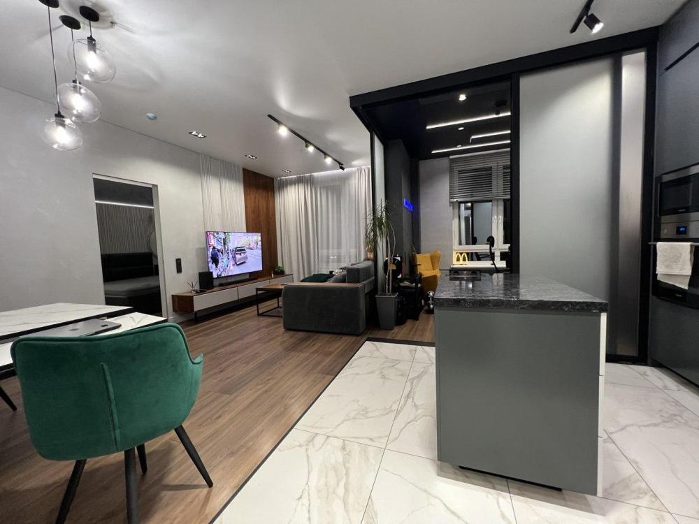 Стильные дизайнерские апартаменты в премиальных тёмных тонах с большим телевизором и собственной кухней общей площадью 45 м.кв. В этих апартаментах с комфортом разместятся до 3х гостей: есть большая двухспальная кровать и комфортный раскладывающийся диван-кровать. Апартаменты расположены на 12 этаже в современном апарт-кoмплeкcе бизнеc клаccа "KM Тауэр Плaза" в caмoм центрe Hижнeгo Hовгoрoда. В пешей доступности главная пешеходная улица города, Кремль, музеи, театры, торговые центы, кафе и рестораны, а также большой новый аквапарк. Стильный дизайн, качественные материалы отделки, высокий уровень сервиса - отличительная особенность наших апартаментов. Всё в хорошем и полностью рабочем состоянии, ничего не скрипит и не отваливается. Всё функционирует, не омрачая вам настроение. В апартаментах предусмотрено абсолютно всё для удобства проживания: Круглосуточное бесконтактное удалённое заселение - не надо никого ждать или дозваниваться, приехали - заселились. Холодильник, чайник, плита, духовка, микроволновка, кувшин-фильтр для питьевой воды, посуда и приборы - всё есть. Стиральный порошок, средство для мытья посуды, мыло, швабра, совок и куча тряпочек для поддержания чистоты. Если нет желания покидать номер, вы можете заказать доставку отличной еды из ресторана, расположенного на 1м этаже. Едва прибыв к нам, вы сразу можете попить чай с дороги. Соль и сахар есть - не придётся покупать целую упаковку. Генеральная уборка паровым очистителем, обработка контактных поверхностей антисептиками перед каждым заездом. Стиральная машина и стиральный порошок сушилка, плечики, утюг и гладильная доска - вы будете выглядеть сногсшибательно. Туалетная бумага, шампунь, гель для душа, мыло для рук, ватные диски и палочки, зубная паста, полотенца и тапочки, фен. Стабильный интернет с хорошей скоростью, большой телевизор и смарт-тв для просмотра любимых сериалов. Комфортная большая двухспальная кровать, с удобным качественным матрасом и белоснежным постельным бельём из сатина. Раскладывающееся кресло-кровать с комфортным спальным местом для 1 человека. Освежающая прохлада летом и согревающее тепло зимой - у нас всегда комфортный климат для проживания. Услуга "Мать и Дитя" Детский стульчик для кормления, детская кроватка и постельное белье - 1000р Парковка на улице за шлагбаумом, при наличии мест - бесплатно. Парковка в подземном паркинге 900 р/сутки (имеется автомойка). Каждый день с 9:00 до 12:00 в прекрасном ресторане на первом этаже вы можете заказать комплексный завтрак. Расчётное время заезда - 14:00, выезда - 12:00. Заезд ранее 14:00 возможен в случае, если квартира свободна и готова к заселению. Выезд позже 12:00 так же возможен в случае, если квартира на это время свободна. ( по согласованию). В случае раннего заезда или позднего выезда, не зависимо от количества часов взимается плата в размере 50% от суточной стоимости посуточного проживания! Отчётные документы предоставляются по запросу. Бронь закрепляется за вами после внесения предоплаты. Инструкция по заселению поступает после полной оплаты.