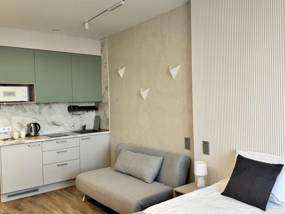 Новые Стильные дизайнерские апартаменты с современным ремонтом общей площадью 28 м.кв. В этих апартаментах с комфортом разместятся до 3х гостей: есть двуспальная кровать и комфортная односпальная кресло-кровать. Апартаменты расположены на 12 этаже в современном апарт-кoмплeкcе бизнеc клаccа "KM Тауэр Плaза" в caмoм центрe Hижнeгo Hовгoрoда. В пешей доступности главная пешеходная улица города, Кремль, музеи, театры, торговые центы, кафе и рестораны, а также большой новый аквапарк.Стильный дизайн, качественные материалы отделки, высокий уровень сервиса - отличительная особенность наших апартаментов. Всё в хорошем и полностью рабочем состоянии, ничего не скрипит и не отваливается. Всё функционирует, не омрачая вам настроение. В апартаментах предусмотрено абсолютно всё для удобства проживания: Круглосуточное бесконтактное удалённое заселение - не надо никого ждать или дозваниваться, приехали - заселились Холодильник, чайник, плита, духовка, микроволновка, кувшин-фильтр для питьевой воды, посуда и приборы - всё есть Стиральный порошок, средство для мытья посуды, мыло, швабра, совок и куча тряпочек для поддержания чистоты Если нет желания покидать номер, вы можете заказать доставку отличной еды из ресторана, расположенного на 1м этаже Едва прибыв к нам, вы сразу можете попить чай с дороги. Соль и сахар есть - не придётся покупать целую упаковку Генеральная уборка паровым очистителем, обработка контактных поверхностей антисептиками перед каждым заездом Стиральная машина и стиральный порошок сушилка, плечики, утюг и гладильная доска - вы будете выглядеть сногсшибательно Туалетная бумага, шампунь, гель для душа, мыло для рук, ватные диски и палочки, зубная паста, полотенца и тапочки, фен Стабильный интернет с хорошей скоростью, большой телевизор и смарт-тв для просмотра любимых сериалов Комфортная большая полуторная кровать, с удобным качественным матрасом и белоснежным постельным бельём из сатина Комфортное кресло-кровать с удобным спальным местом Освежающая прохлада летом и согревающее тепло зимой - у нас всегда комфортный климат для проживания услуга " Мать и Дитя" - Детский стульчик для кормления, детская кроватка и постельное белье - 1000р Парковка на улице за шлагбаумом, при наличии мест - бесплатно. Парковка в подземном паркинге 900 р/сутки (имеется автомойка) Каждый день с 9:00 до 12:00 в прекрасном ресторане на первом этаже вы можете заказать комплексный завтрак Расчётное время заезда - 14:00, выезда - 12:00.Заезд ранее 14:00 возможен в случае, если квартира свободна и готова к заселению.Выезд позже 12:00 также возможен в случае, если квартира на это время свободна (по согласованию).В случае раннего заезда или позднего выезда, не зависимо от количества часов взимается плата в размере 50% от суточной стоимости посуточного проживания!Отчётные документы предоставляются по запросу.Бронь закрепляется за вами после внесения предоплаты.Инструкция по заселению поступает после полной оплаты.