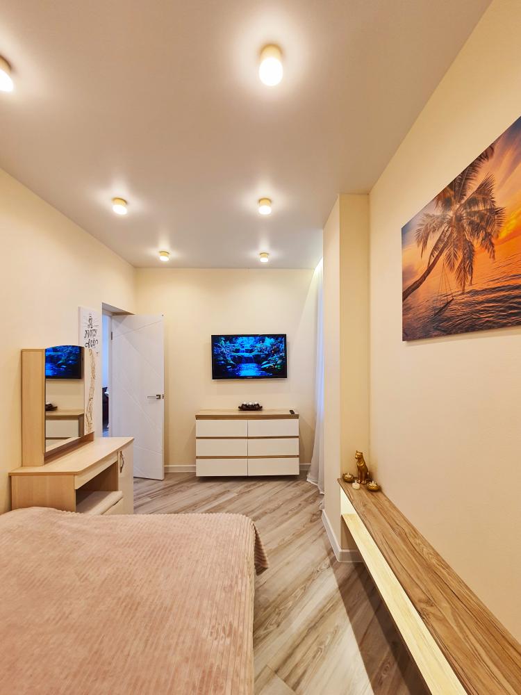 Для наших Гостей есть всё для комфортного проживания: Комфортная двуспальная кровать, двуспальный раскладной диван-кровать(независимый пружинный блок), односпальный диван-кровать, свежее постельное белье, подушки и одеяла. Кухонная зона со всем необходимым - холодильник, варочная поверхность, вытяжка, посудомоечная машина (таблетки предоставляются), СВЧ-печь, чайник, проточный фильтр для воды, вся необходимая посуда и столовые приборы. Санузел с ванной и тропическим душем, установлен водонагреватель (нет перебоев с горячей водой), мы предоставляем чистые полотенца, одноразовые тапочки, гигиенические принадлежности, фен для сушки волос Стиральная машина-автомат, порошок для стирки, сушка для белья, утюг и гладильная доска Для вашего развлечения - безлимитный WiFi до 100 Мбит, два SMART-телевизора - интернет-ТВ до 500 каналов, онлайн-кинотеатры Кондиционер для комфортного климата Шкафы для размещения Ваших вещей.