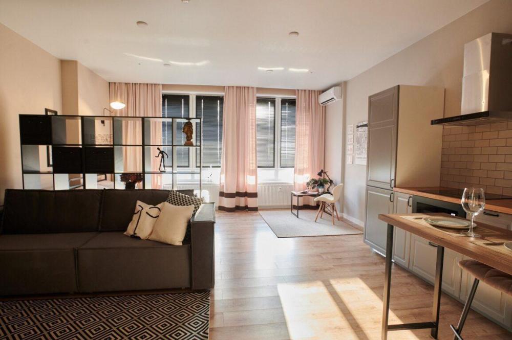 В распоряжении гостей двуспальная кровать, раскладной диван, ванная комната с душем и стиральной машиной и оборудованная мини-кухня со всем необходимым. Гостям предоставляются полотенца и постельное белье. Высокоскоростной WI-FI. На первом этаже расположен ресторан и лобби. Отличное расположение в центре города, удобная транспортная развязка, развитая инфраструктура. Рядом расположены: супермаркеты, отделения банков, торгово-развлекательный центр «НЕБО», университеты, медицинские учреждения, станция метро «Горьковская» и остановки общественного транспорта, до площади Горького 10 минут пешком.
