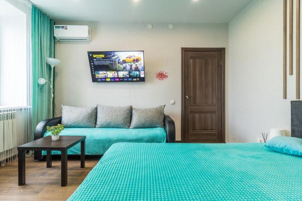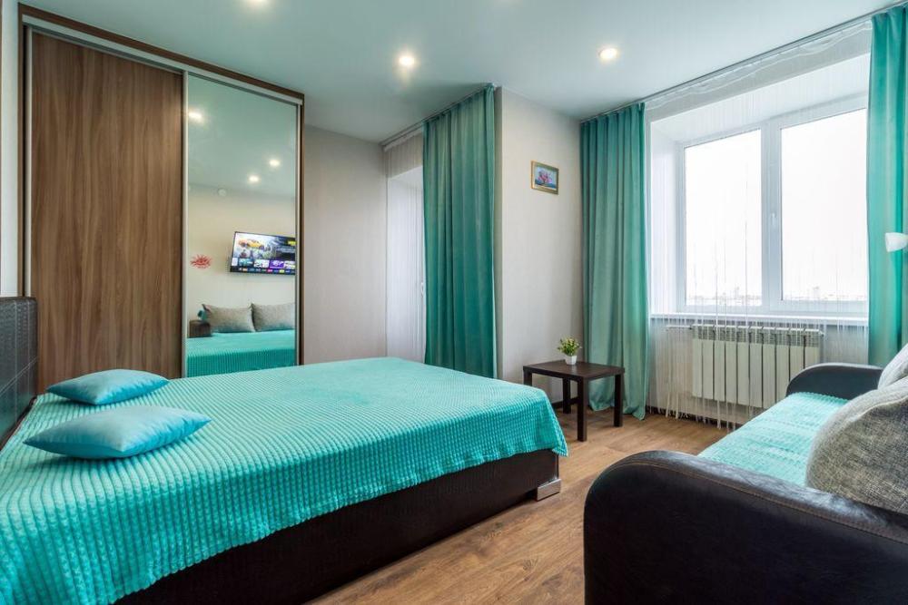 Для комфортного проживания гостей апартаменты оборудованы всем необходимым включая удобную и функциональную мебель, современную технику, а также быстрый Wi-Fi. В квартире 6 (шесть) раздельных спальных мест, комнаты изолированные, установлен кондиционер, в каждой комнате для комфортного сна-шторы блэкаут. В одной комнате 2-х спальная кровать и 2-х спальный диван. В другой комнате: 2-х спальный диван и 2 односпальные кровати, которые можно соединить и получается 2-х спальная кровать, диван на кухне раскладывается.