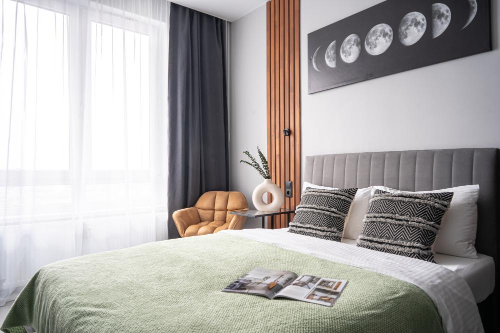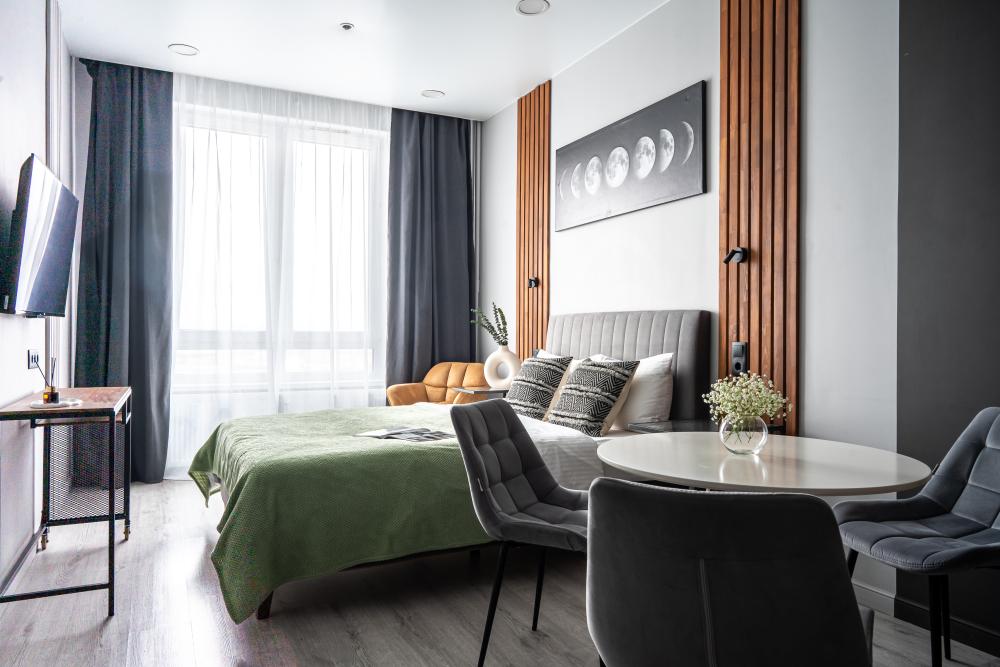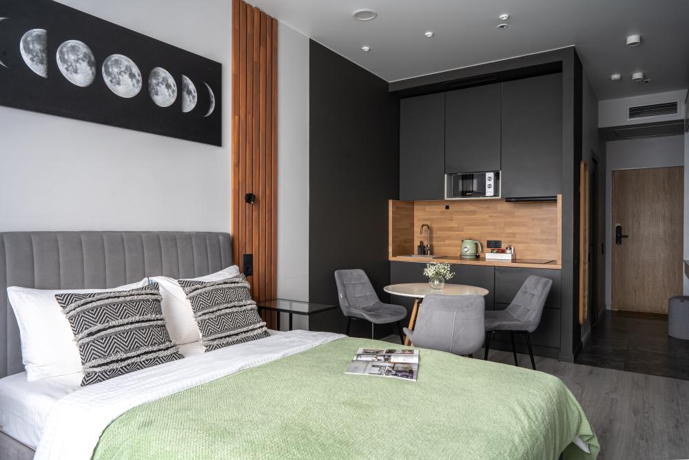 Eclipse apartment. Студия с качественным дизайнерским ремонтом. Эстетичные интерьерные решения, панорамный вид на город и знаменитые Нижегородские закаты. Bместимocть дo 2 гоcтей. Апартамент в центре города, KM Tower Plaza. САМОСТОЯТЕЛЬНОЕ ЗАСЕЛЕНИЕ И ВЫЕЗД! В описании ниже вы найдёте всю необходимую информацию ПОЖАЛУЙСТА, не отправляйте заявку, если не ознакомились с правилами заселения и проживания. НАПОЛНЕНИЕ КВАРТИРЫ: - Двуспальная кровать - Кондиционер - Полностью укомплектованная кухня: индукционная плита, чайник, микроволновая печь, холодильник, посуда и столовые приборы, фильтр-кувшин - Стабильный wi-fi и телевизор Smаrt ТV - Стиральная машина и средство для стирки - Сушилка для белья, гладильная доска, утюг - Белоснежное постельное бельё высокого качества и полотенца (для стирки и глажки мы пользуемся только услугами профессиональной прачечной) - Фен для волос, а также одноразовые тапочки и зубные наборы - Шампунь и бальзам для волос, гель для душа, ватные палочки, диски Wеlсоmе-набор: Чай, кофе, сахар, соль-перец, крупы, макароны, растительное масло. ОТЛИЧНОЕ МЕСТОПОЛОЖЕНИЕ: - 7 мин пешком до пл. Максима Горького и главной пешеходной улицы города Большой Покровской - До Кремля 35 мин прогулочным шагом или 7 мин на авто - Аквапарк Океанис и парк Швейцария - 8 мин на авто - ТРЦ Небо – 3 мин пешком - Развитая внутренняя инфраструктура – в здании апарт-комплекса ресторан Steak House, кофейня Coffe Molly, кондитерская Cake by Di, цветочный магазин, студия красоты - Рядом множество магазинов, кафе, рестораны, аптеки ТРАНСПОРТ: - Станция метро Горьковская – 10 мин пешком - Московский вокзал – 15 мин на такси - Аэропорт – 40 мин на такси - Также ходят автобусы, трамваи и маршрутные такси. ПРАВИЛА ПРОЖИВАНИЯ И ЗАСЕЛЕНИЯ: - Время заезда с 15:00, выезда до 12:00. - Залог 3000 рублей обязателен. Вносится через платформу Монета. Возврат проводим в день выезда до 20:00 после уборки и проверки состояния квартиры. - Мы используем мобильное приложение Apartsharing для самостоятельного заселения (является оператором персональных данных). После внесения предоплаты вам будет направлена ссылка — верификация возможна по паспорту, Sber-ID, T-ID. - Юр. лицам и командировочным отчётные документы по запросу (чек на эл. почту, договор, акт). ЗАПРЕЩЕНО: - Курение любых форм курительных средств и жидкостей на всей территории апартаментов. - Проведение шумных вечеринок и мероприятий. - Проживание лиц моложе 18 лет без сопровождения родителей. - Проживание с животными. - Порча имущества. При нарушении правил проживания взимается штраф в размере суммы залога. Отправляя заявку на бронирование, вы подтверждаете свое согласие с правилами проживания и бронирования, указанными в этом объявлении. Всегда рады вам. До встречи