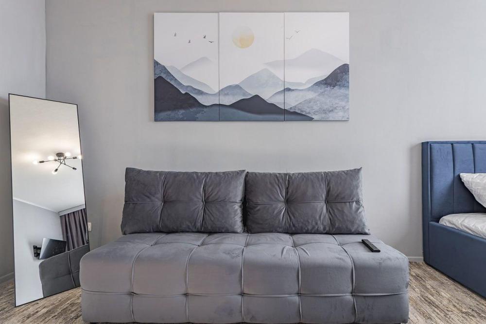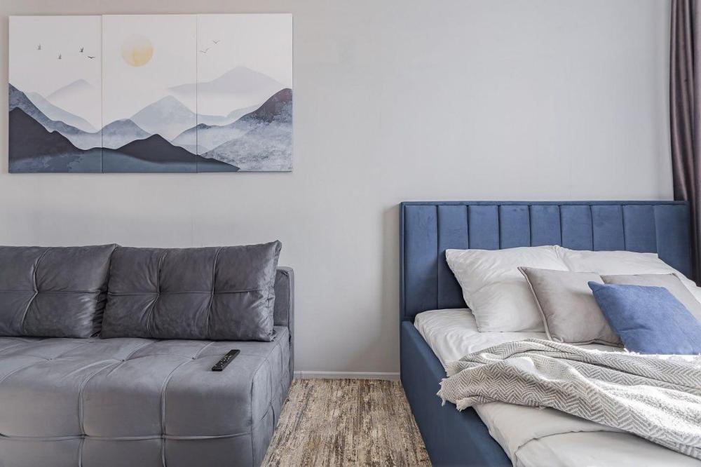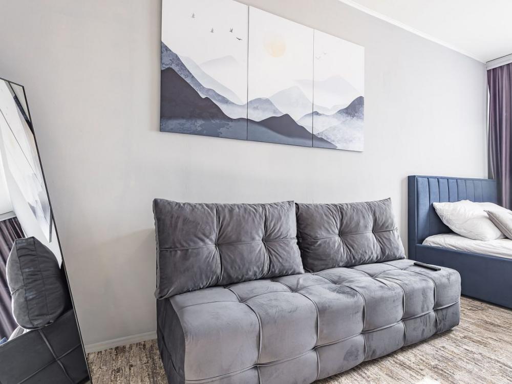 В апартаментах имеется все необходимое для комфортного проживания : кровать 160х200, раскладной диван 160х200, полноценно укомплектованная кухня: плита, чайник, микроволновая печь, духовка, холодильник, посуда и столовые приборы; стабильный wi-fi, стиральная машина, сушилка для белья, отпариватель, фен для волос, а также одноразовые тапочки и зубные наборы; Wеlсоmе-набор: чай, сахар, соль-перец, растительное масло.