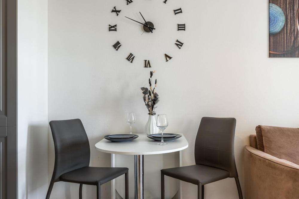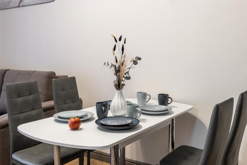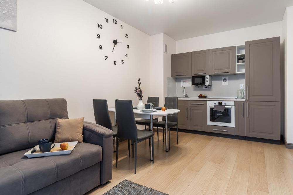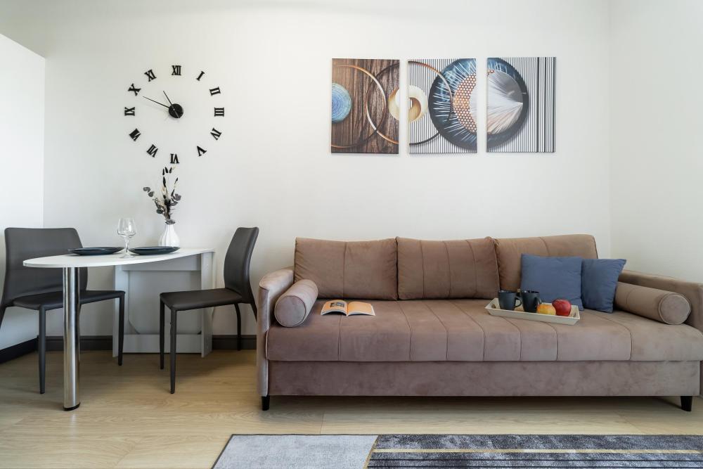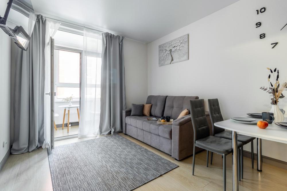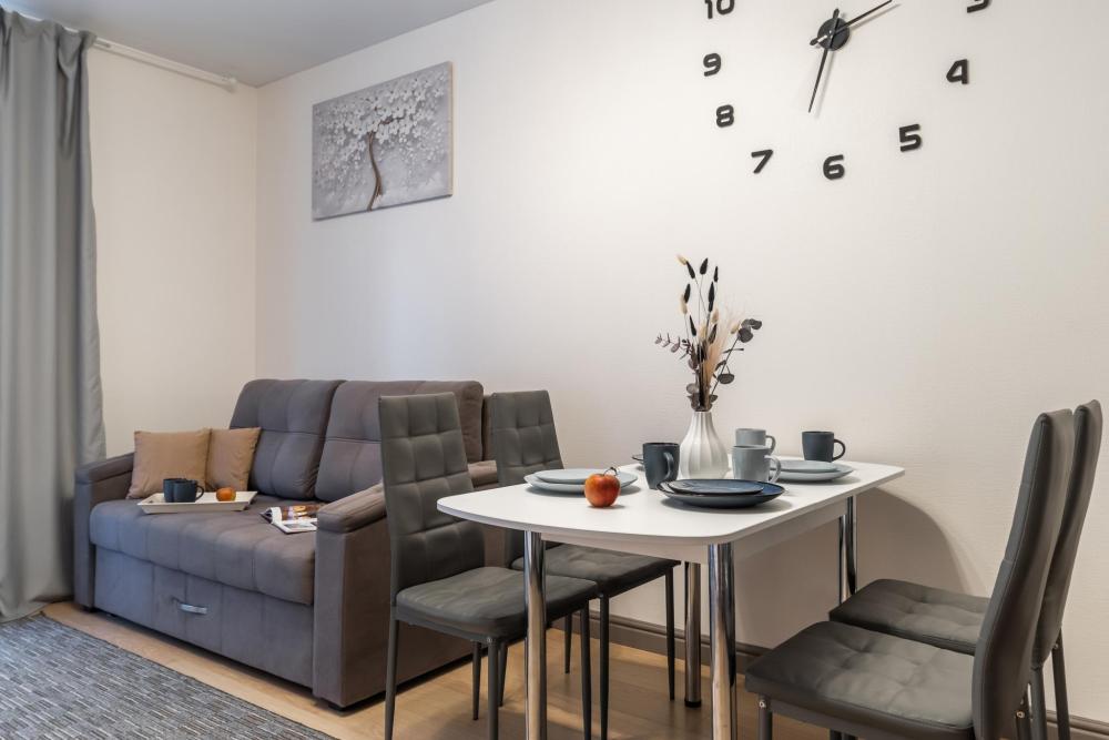 В квартире есть все необходимое для приятного время препровождения: двуспальная кровать и диван-кровать, кухня-гостиная оборудована всей необходимой посудой и техникой, смарт-телевизор с доступом в YouTube, плазменный телевизор диагональю 55 дюймов, а также бесплатный Wi-Fi; ванная комната оснащена всем необходимым, включая полотенца, гигиенические средства и фен, стиральная машина, утюг, сушилка и гладильная доска, бесплатный чай/кофе, аптечка первой помощи , вся бытовая химия.