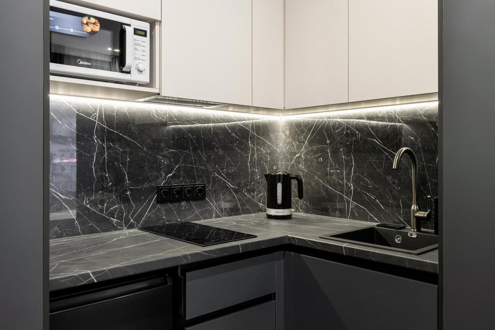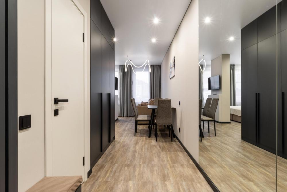 Студия №235 площадью 26 м2 - красивый дизайн и утонченный стиль. Каждая деталь продумана для комфорта: двуспальная кровать, постельное белье, телевизор, Wi-Fi, полноценная кухня, обеденная зона, с полным набором посуды, кондиционер. Санузел оборудован: душевая кабина, стиральная машина, порошок, фен, набор полотенец, тапочки, ванные принадлежности, зубной набор, а также утюг/гладильная доска. К услугам гостей: чайный сет, сладкий комплимент, питьевая вода, средство для мытья посуды. Студия расположена на 2 этаже.