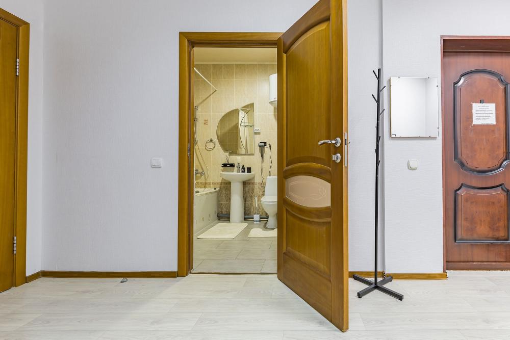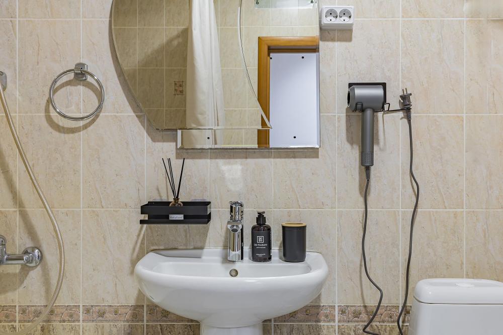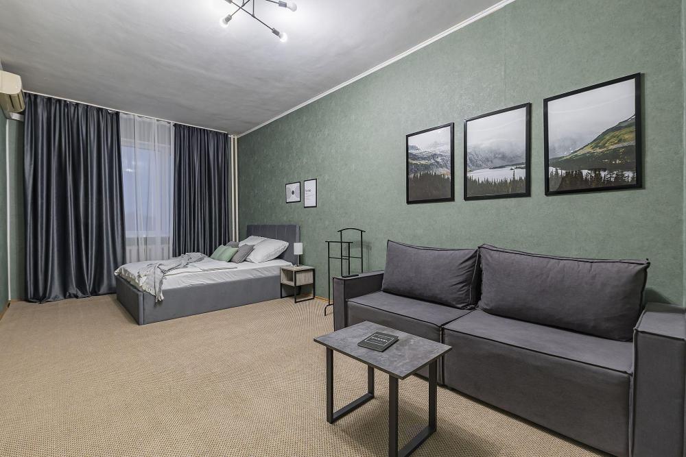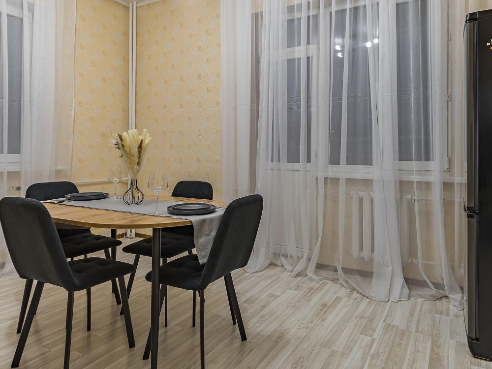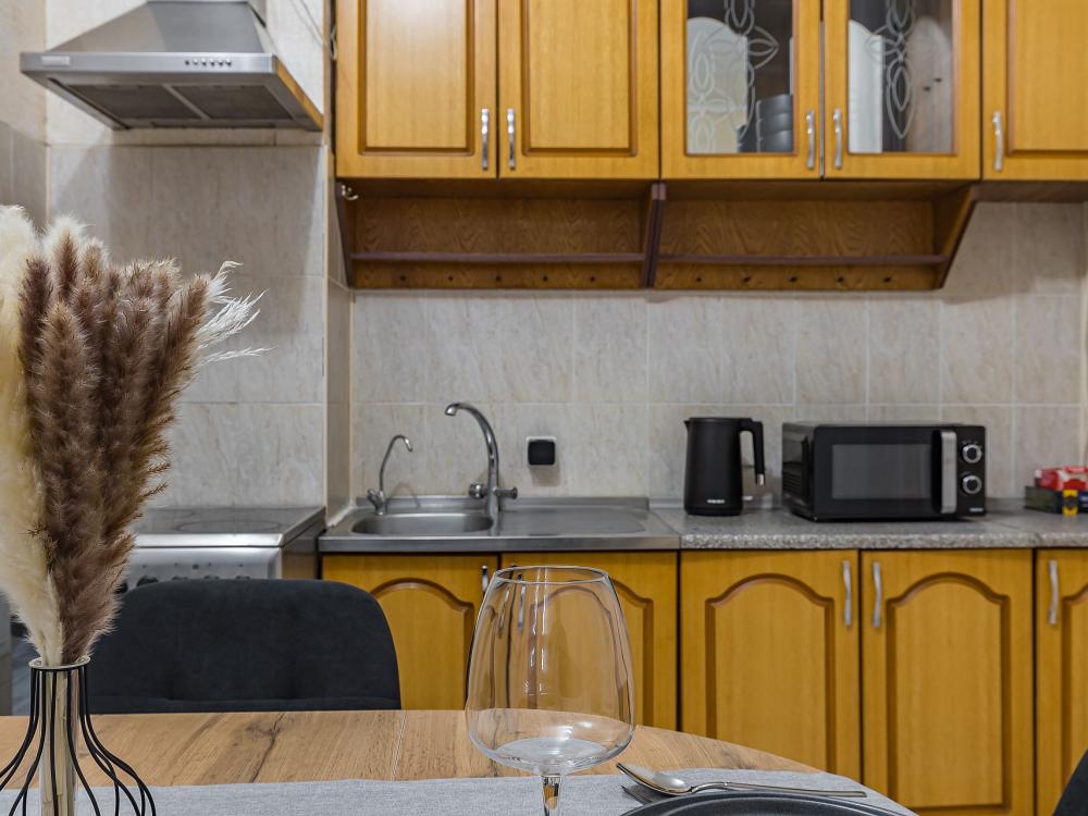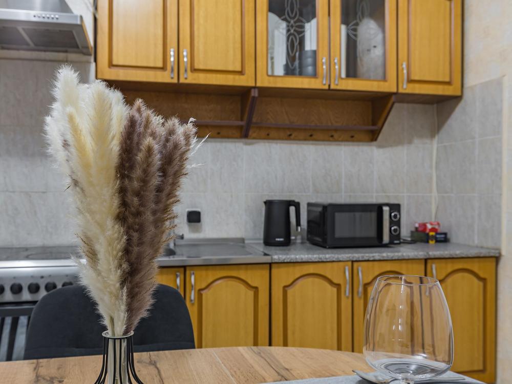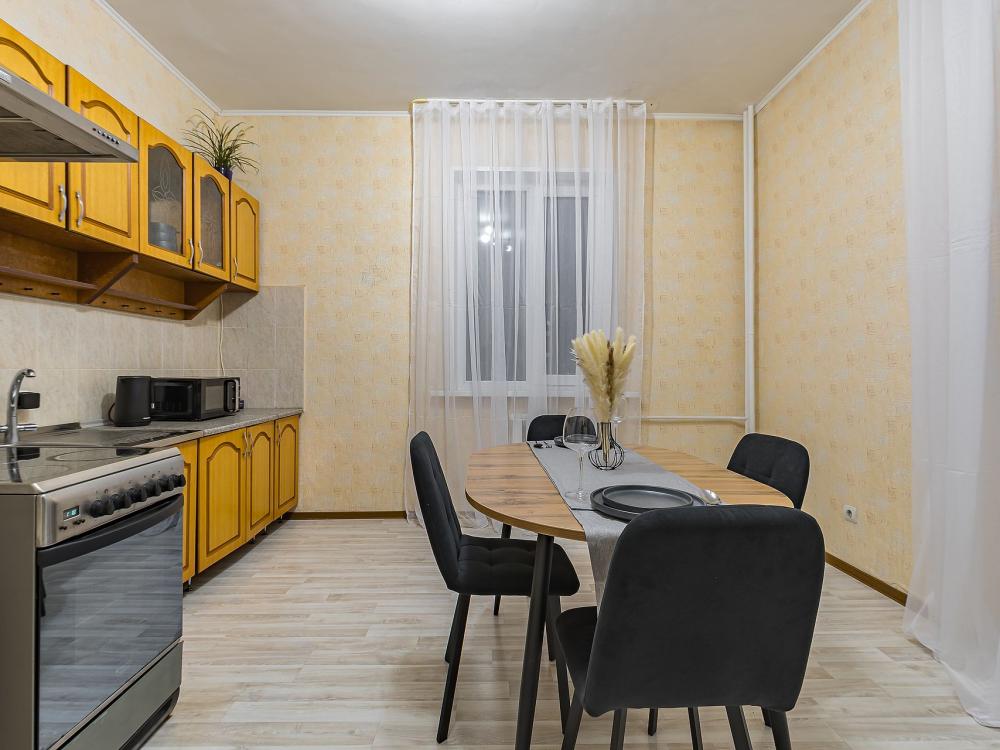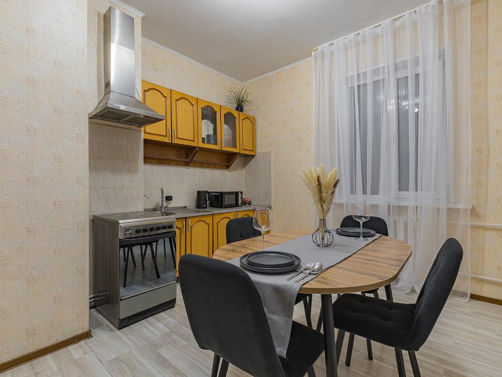 В апартаментах имеется все необходимое для комфортного проживания : кровать 160х200, раскладной диван 160х200, полноценно укомплектованная кухня: плита, чайник, микроволновая печь, духовка, холодильник, посуда и столовые приборы; стабильный wi-fi, стиральная машина, сушилка для белья, отпариватель, фен для волос, а также одноразовые тапочки и зубные наборы; Wеlсоmе-набор: чай, сахар, соль-перец, растительное масло.